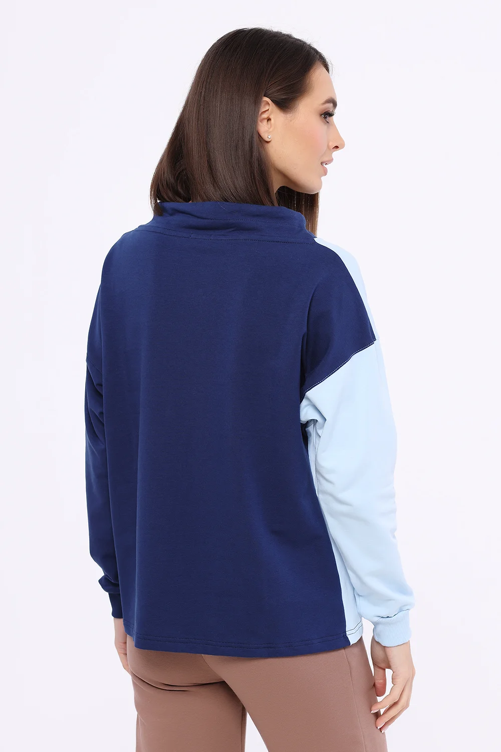 Двухцветный свитшот с воротником стойкой. Добавь уюта осеннему гардеробу с помощью спортивного свитшота из коллекции Актив. Вырез выполнен в форме высокого воротника стойки, приоткрывая линию шеи. Необычный дизайн свитшота подразумевает вертикальное деление цветом на две части, придавая образу свежести. Свитшоты выполнены в нескольких цветовых сочетаниях. Выбирайте подходящие именно Вам. Вырез горловины круглый. Отделка горловины воротник. Воротник стойка. Рукава длинные. Рукава втачные. Без застежки. Декоративный элемент принт. Крой прямой. Без карманов. Рекомендована стирка при температуре не более 30С.Модель свитшота из спортивной линии Актив подходит всем, кто ведет активный образ жизни или просто ценит в одежде комфорт и высокое качество ткани. Создавайте спортивные или повседневные образы, дополняя свитшот любимыми джинсами или спортивными брюками из коллекции Актив, а также удобной обувью на низком ходу.
