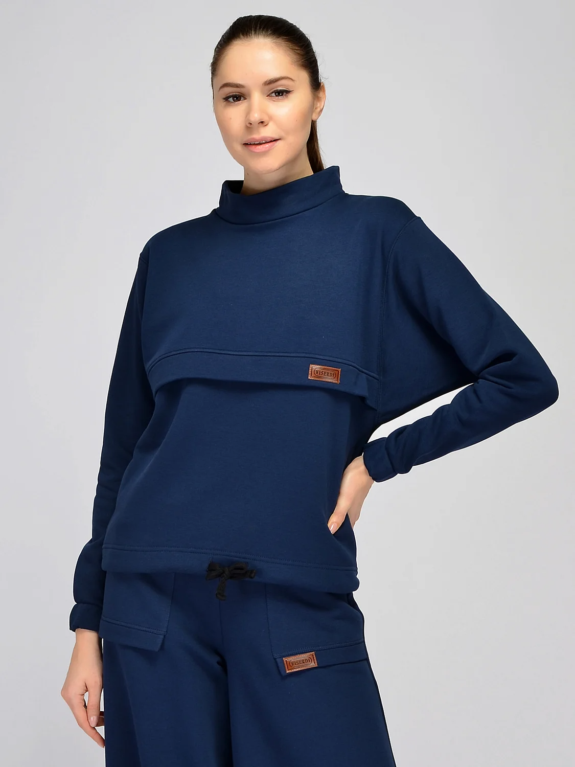 Свитшот прямого кроя. Дополните свой спортивный гардероб уникальным свитшотом с интересными декоративными деталями. Горловина свитшота с длинным рукавом имеет уютный воротник-стойку. На передней стороне свитшота находится декоративный клапан с кожаным фирменным логотипом контрастного цвета. А обхват свитшота на бедрах удобно регулировать с помощью шнурка. Вырез горловины круглый. Отделка горловины воротник-стойка. Рукава длинные. Рукава втачные. Без застежки. Декоративный элемент логотип, клапан. Крой прямой. Без карманов. Рекомендована стирка при температуре 30С. Нетипичный свитшот с декоративным клапаном подойдет для спортивного или повседневного образа. Он идеально сочетается с комплектными расклешенными брюками полной длины из нашей коллекции или джинсами. Завершите спортивный образ удобной обувью на низком ходу и высоким хвостом.