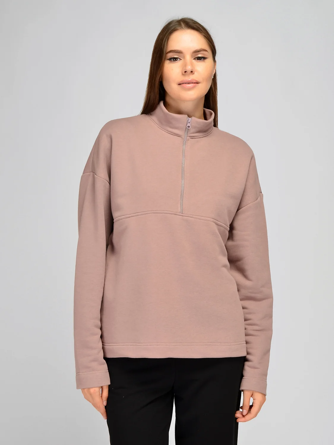 Спортивный свитшот оверсайз будет уместен в Вашем гардеробе круглый год. Стильный воротник стойка в сочетании с недлинной молнией придает образу практичности и уюта. Прямой крой не облегает фигуру, не подчеркивает ее особенности и поможет сркыть возможные недостатки. Свободная кофта лаконичного фасона дополнена аккуратным жаккардовым флажком с фирменным логотипом на нижней части изделия. Изделие выполнено из качественной хлопковой ткани, поэтому Вы можете быть уверены, что оно не потеряет свою форму после многих стирок. В свитшоте из петельной трехнитки Вы будете чувствовать себя комфортно в любую погоду. Натуральный материал позволит коже дышать. Базовая вещь идеально сочетается не только с комплектными брюками гуджерами, но и с трикотажными юбками, джинсами и шортами. Дополните практичный спортивный образ кроссовками или кедами и удобным рюкзаком. Носите вещь навыпуск изи запрвьте за пояс переднюю часть, чтобы подчеркнуть талию. Универсальная модель придется по вкусу модницам разного возраста: и подросткам, и молодым девушкам и взросылм женщинам, которые стремятся добавить удобства своим образам. Вы можете выбрать свитшот для занятий спортом, прогулок, отдыха на природе или для дома.