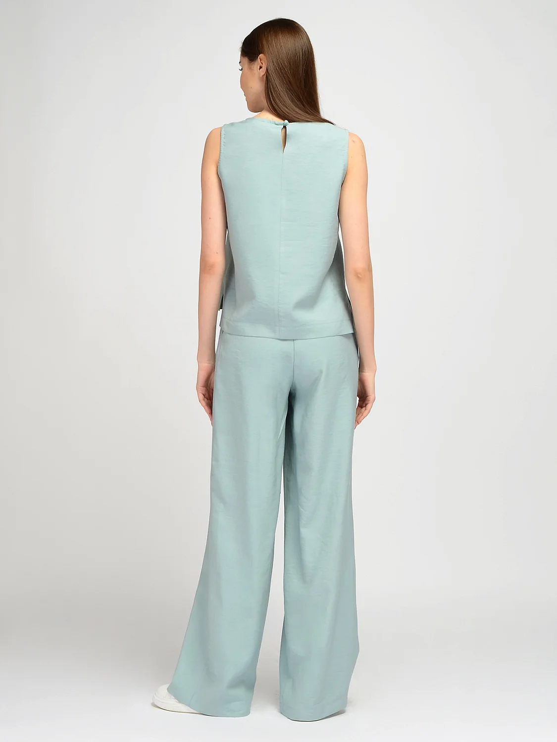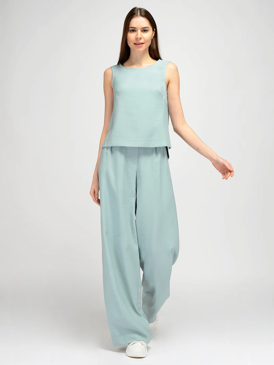 Свободный топ без рукавов идеально подойдет для весенних и летних образов. Прямой топ имеет округлый вырез горловины, подчеркивая ключицу и не выделяет зону декольте. Широкие бретели скрывают детали нижнего белья. Летний топ имеет асимметричную длину, спереди он немного короче, а по бокам располагаются небольшие разрезы. Топ имеет застежку в виду пуговицы с аккуратным разрезом капелька на спине. Базовый легкий топ выполнен из натурального дышащего материала, с большим процентом хлопка в составе. А это значит, что Вы будете чувствовать себя комфортно на протяжении всего дня, даже в жаркий летний день. Лаконичная модель подойдет как взрослым женщинам, так и молодым девушкам. Хлопковый топ прямого кроя впишется как в строгие образы, так и в праздничные и повседневные. Вы можете дополнить образ украшениями и аксессуарами на свой вкус. Топ из хлопка сочетается с классическими жакетами, брюками и юбками, джинсами. Вы можете носить топ навыпуск или заправленным за пояс. Дополните свой летний гардероб базовым топом, который сохранит свою актуальность на долгие годы.