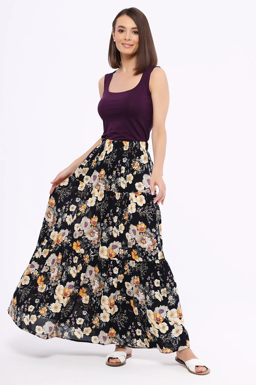 Классический топ с круглым вырезом - универсальный элемент гардероба. Топ без рукавов сможет дополнить любой образ. Приталенный крой подчеркнёт изгибы фигуры, а глубокий вырез - зону декольте. Топ прекрасно подойдёт для жаркого времени года.