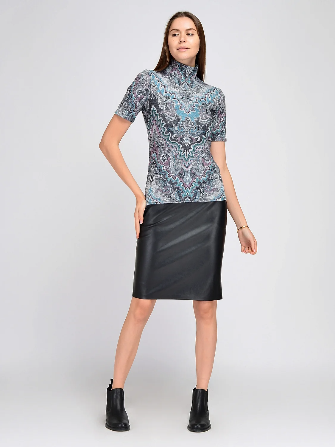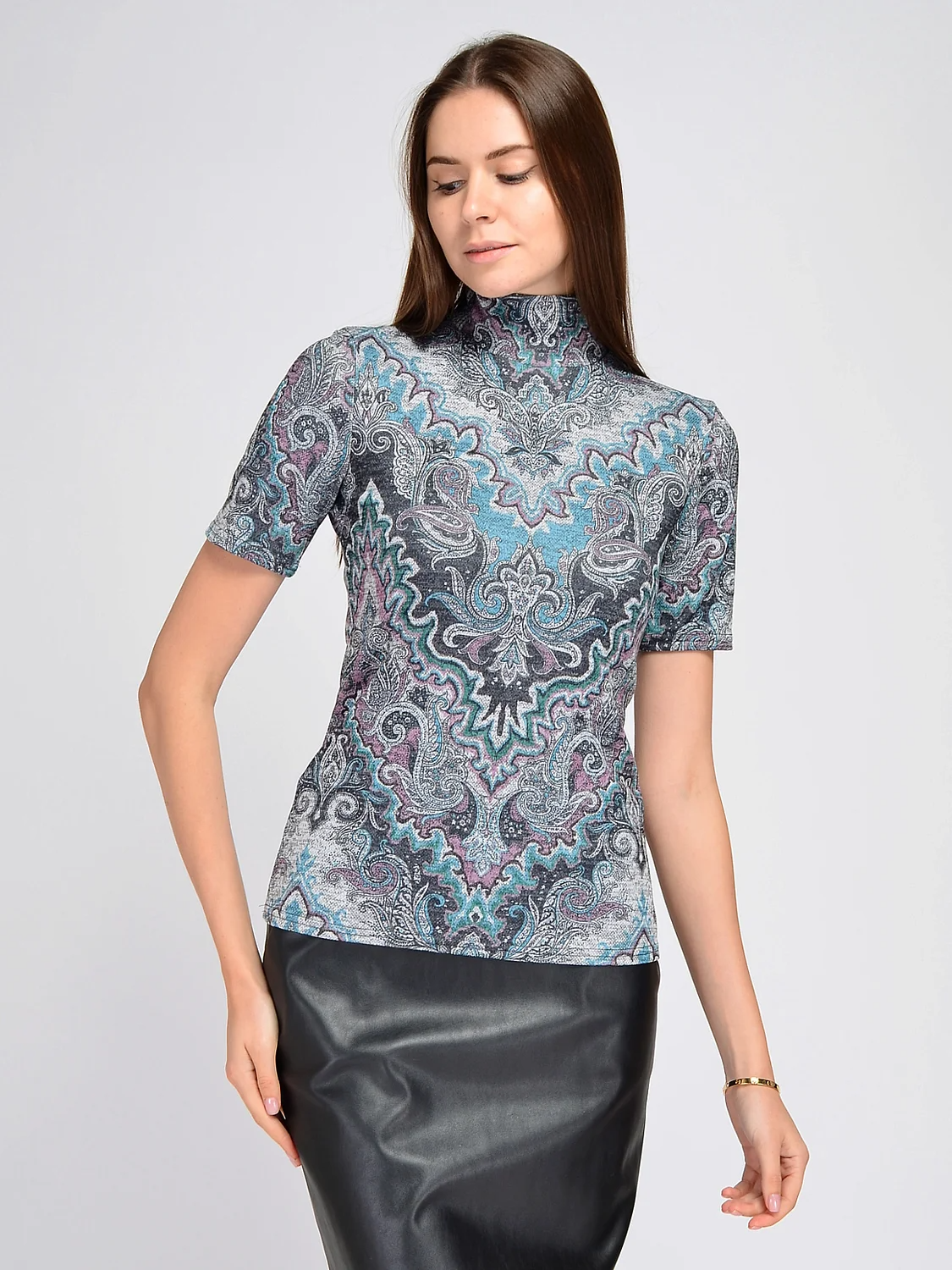 Лаконичная блузка водолазка с воротником стойкой и коротким рукавом дополнит различные осенние образы. Лаконичный фасон позволит сочетать блузку с яркими и эффектными аксессуарами и обувью. Классические комплектные вещи и украшения дополнят строгие, офисные образы.