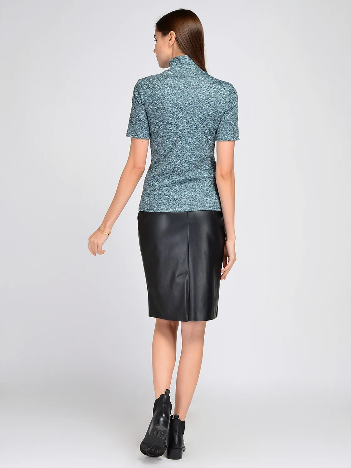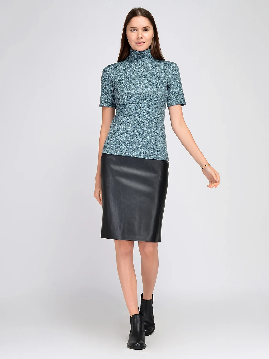 Лаконичная блузка водолазка с воротником стойкой и коротким рукавом дополнит различные осенние образы. Лаконичный фасон позволит сочетать блузку с яркими и эффектными аксессуарами и обувью. Классические комплектные вещи и украшения дополнят строгие, офисные образы.