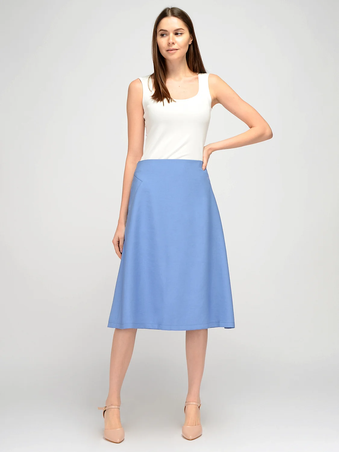 Летняя юбка миди станет базой в Вашем гардеробе в жаркое время года. Юбка трапеция имеет среднюю посадку. По бокам расположены два кармана, в которые можно положить мелочи, необходимые современной девушке. Легкая миди юбка выполнена из натуральной дышащей ткани, в составе которой 70% хлопка, а это значит, что Вам будет комфортно в ней весь день. Застегивается юбка на потайную молнию, расположенную в боковом шве. Летняя хлопковая юбка поможет создать стильные образы для офиса, прогулки, свидания или для торжественного мероприятия. Широкая юбка ниже колена придется по вкусу как взрослым женщинам, так и молодым девушкам. Актуальная длина миди является трендом и подходит девушкам любого роста и комплекции. Летняя юбка с карманами станет универсальной новинкой. Свежие трендовые расцветки юбки прекрасно сочетаются с другими цветами, поэтому Вы можете экспериментировать с верхом. Юбка миди из хлопка идеально сочетается с комплектным жакетом из нашей коллекции. Под жакет вы можете надеть облегающий или свободный топ, футболку или блузку. Обувь выбирайте исходя из повода. Хлопковая юбка сочетается как с классическими лодочками и босоножками, так и с кедами.
