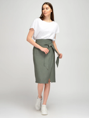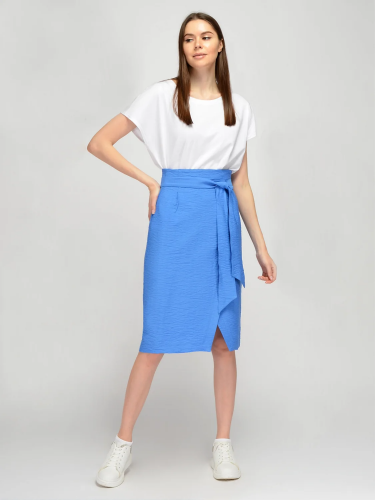 Легкая юбка миди с разрезом станет неотъемлемой частью гардероба девушек, которые предпочитают классический стиль в одежде. У летней юбки завышенная талия, что визуально вытягивает силуэт и делает стройнее. На талии располагается пояс в цвет изделия, который завязывается на узелок и придает женственности и воздушности всему образу. Юбка с асимметричным запахом имеет небольшой разрез спереди. Стильная прямая юбка легко впишется в летний гардероб как взрослых женщин, так и молодых девушек. Удлиненная юбка выполнена из приятной дышащей ткани с большим процентом вискозы в составе. Юбкой миди можно дополнить как классические строгие образы, так и городские образы на каждый день. Летняя прямая юбка сочетается с футболками, блузками, рубашками. Обувь выбирайте исходя из повода. Это могут быть как туфли-лодочки или босоножки, так и кеды или сандалии. Базовая юбка с разрезом станет универсальным элементом Вашего гардероба для жаркого сезона