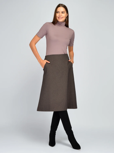 Строгая юбка покроя трапеция дополнит различные образы в прохладный сезон. У изделия средняя посадка на талии. По бокам располагаются практичные карманы для мелочей, которые всегда должны быть под рукой. Классическая юбка полусонце скрывает возможные недостатки фигуры благодаря свободному облеганию бедер. Оптимальная длина ниже колена подойдет девушкам и женщинам разного роста и возраста. Однотонная юбка миди выполнена из приятной качественной ткани и дополнена подкладом, обеспечивая Вам максимальный комфорт в межсезонье. Базовая расклешенная модель впишется как в строгие, так и в повседневные или праздничные образы. Подойдет для работы, торжественных мероприятий или прогулок. Обувь лучше подобрать на высоком ходу, чтобы визуально вытянуть силуэт. В качестве плечевого изделия Вы можете выбрать водолазку, джемпер, блузку, рубашку или даже свитер. Чтобы создать нарядный образ на выход, не забудьте про акцентные украшения и аксессуары. Универсальная юбочка станет базовым элементом Вашего гардероба, поскольку будет легко комбинироваться с самыми разными по стилю элементами.