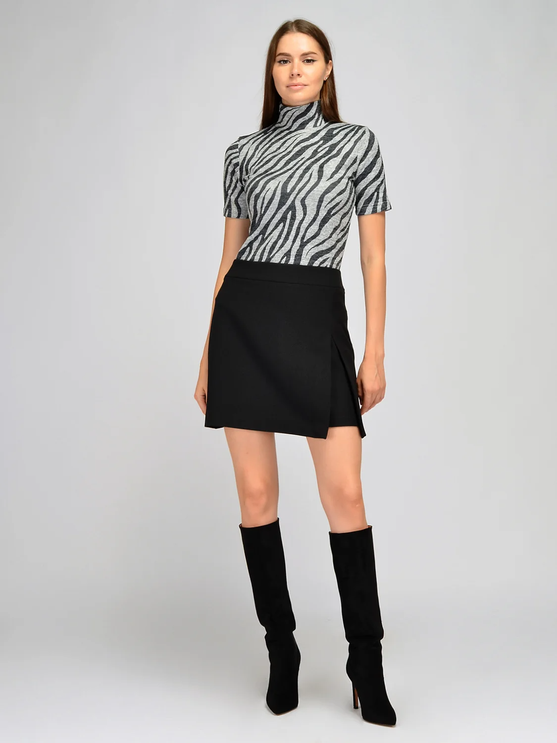 Базовая юбка мини с высокой посадкой станет актуальной новинкой для осеннего сезона. Высокая посадка акцентирует внимание на линии талии, подчеркивая женственные формы. Застегивается изделия на потайную молнию сзади. Главной изюминкой является эффектный разрез со складкой спереди. Прямая юбка выше колена подойдет для школы девушкам подросткового возраста, для работы в офисе, если не предусмотрен слишком строгий дресс-код. Вы можете взять модель за основу, придумывая нарядные образы для вечеринок, праздников, торжественных мероприятий, свидания. Классическая вещь также легко дополнит повседневные городские образы в стиле кэжуал. В качестве обуви могут выступать сапоги, туфли, ботильоны и даже ботинки. Если станет холоднее, Вы можете дополнить образ плотными колготками. Юбочка выполнена из приятной наощупь качественной ткани, которая сохранит свой первоначальный вид после многих стирок и будет радовать Вас не один сезон!