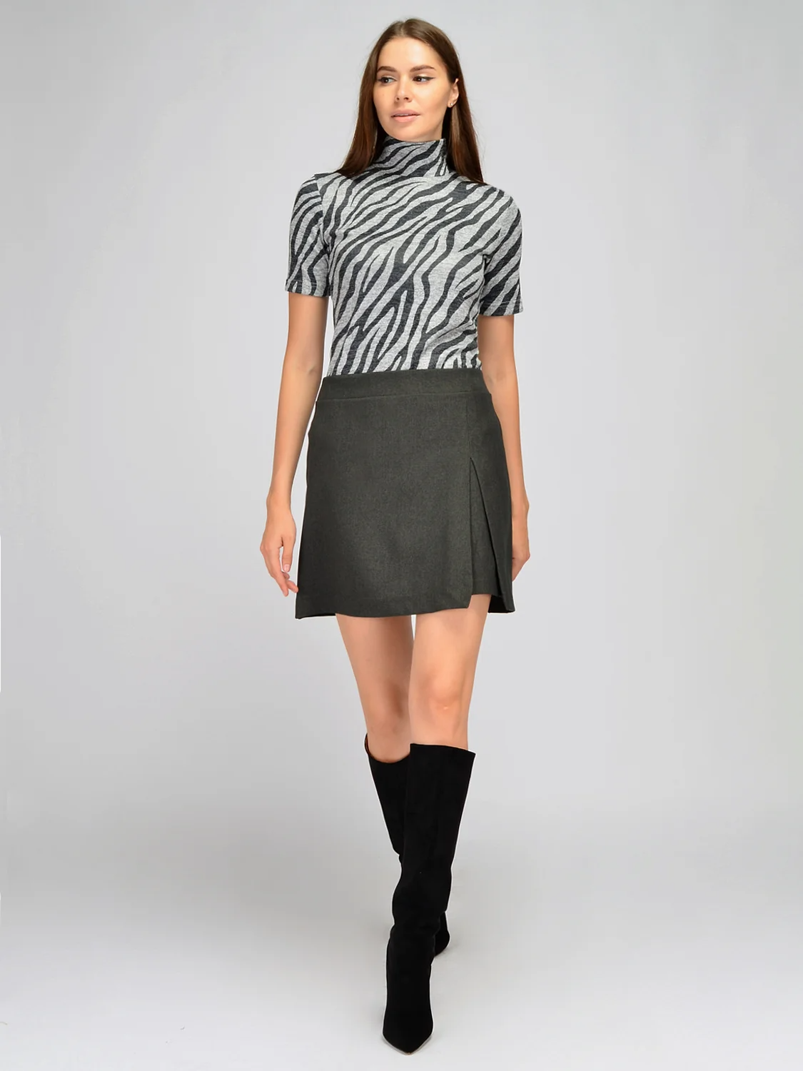 Базовая юбка мини с высокой посадкой станет актуальной новинкой для осеннего сезона. Высокая посадка акцентирует внимание на линии талии, подчеркивая женственные формы. Застегивается изделия на потайную молнию сзади. Главной изюминкой является эффектный разрез со складкой спереди. Прямая юбка выше колена подойдет для школы девушкам подросткового возраста, для работы в офисе, если не предусмотрен слишком строгий дресс-код. Вы можете взять модель за основу, придумывая нарядные образы для вечеринок, праздников, торжественных мероприятий, свидания. Классическая вещь также легко дополнит повседневные городские образы в стиле кэжуал. В качестве обуви могут выступать сапоги, туфли, ботильоны и даже ботинки. Если станет холоднее, Вы можете дополнить образ плотными колготками. Юбочка выполнена из приятной наощупь качественной ткани, которая сохранит свой первоначальный вид после многих стирок и будет радовать Вас не один сезон!