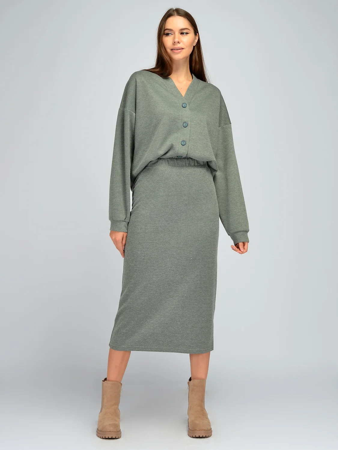 Теплая юбка карандаш без застежки обеспечит Вам уютный и женственный образ в прохладное время года. У юбки высокая посадка, подчеркивающая изгибы фигуры. В талии находится комфортная резинка. Облегающий фасон подчеркнет достоинства фигуры и смоделирует элегантный силуэт. Прямая трикотажная юбка придется по вкусу модницам разного возраста и роста. Универсальная длина ниже колена подойдет как высоким девушкам, так и низким. При необходимости Вы можете немного укоротить модель. Длинная юбка выполнена из приятной наощупь ткани, которая сохранит свой первоначальный вид даже после многих стирок. Мягкая удлиненная юбочка впишется как в повседневные, так и в офисные образы. Модель идеально сочетается с комплектными кардиганом, джемпером и жилетом из нашей коллекции. Вы можете также сочетать ее с футболкой, водолазкой, рубашкой, блузкой. Обувь подбирайте исходя из повода и собственных предпочтений. Универсальная базовая модель будет уместна в любом стиле.