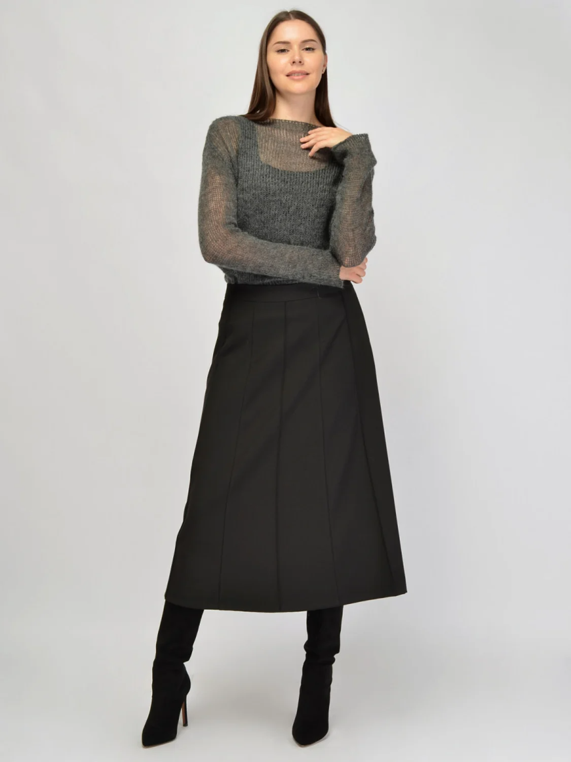 Теплая юбка миди в классическом стиле украсит Ваши повседневные и нарядные образы. Высокая посадка на талии моделирует гармоничные пропорции фигуры, а в сочетании с вертикальными вытачками визуально вытягивается силуэт и удлиняются ноги. Благодаря свободному крою трапеция юбка не облегает фигуру, скрывает возможные недостатки в области бедер, и ткань красиво струится при ходьбе. Застегивается юбка миди на потайную молнию. Модель имеет удобную и практичную подкладку. Базовая юбка в универсальных расцветках легко впишется в любой гардероб для осенне-зимнего сезона. Строгая юбка выполнена из приятной плотной ткани, которая практически не мнется и сохранит опрятный вид на протяжении всего дня. Дополните образ блузкой или джемпером и подберите обувь на высоком ходу. Теплая длинная юбка идеальна для офиса, а также для создания образа для культурных или праздничных мероприятий. Модель будет интересна и молодым девушкам, и дама постарше, даже в размере плюс сайз.