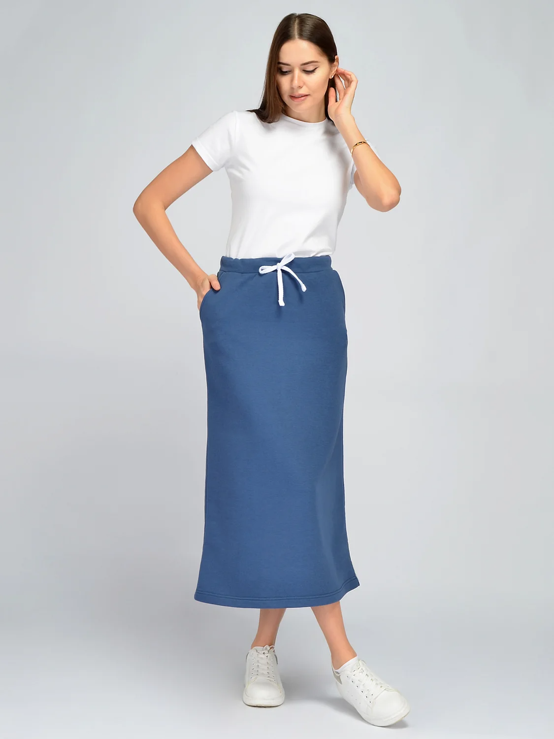 Спортивная юбка миди прямого кроя. Спортивная юбка прямого кроя обязательно должна присутствовать в гардеробе современной девушки. Если в спортивном комплекте Вам хочется чувствовать себя не только комфортно, но и женственно, лаконичная и удобная юбка миди создана для Вас. На юбке предусмотрены боковые втачные карманы, а на передней части юбки миди вышит фирменный логотип. Без застежки. Декоративный элемент вышитый логотип. Длина миди. Без разреза. Крой прямой. Карманы втачные. Пояс на широкой резинке и с декоративным шнурком. Рекомендована строке при температуре 30С. Спортивная юбка без застёжки подходит тем, кто ведёт активный образ жизни, а также ценит комфорт и качество. Юбка миди выполнена из высококачественного хлопкового материала, который обладает высокой износостойкостью. Прямая юбка с карманами идеально сочетается с базовыми спортивными моделями из коллекции Актив: футболки, рубашки-поло, свитшоты и худи.