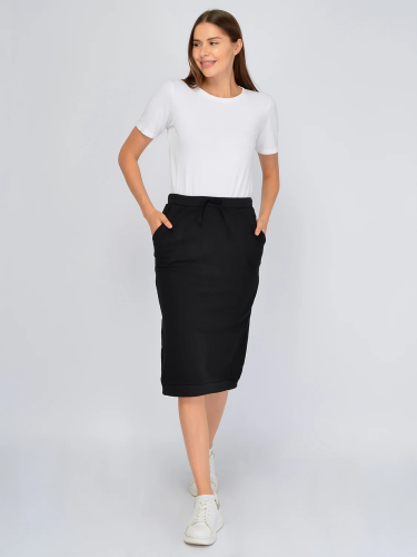 Спортивная юбка миди придется по вкусу девушкам, которые выбирают не только практичные, но и женственные предметы гардероба. Длинная трикотажная юбка имеет высокую посадку на талии, которая дополнена удобной резинкой со шнурком, что позволит комфортно регулировать плотность посадки. По бокам расположены глубокие карманы, без которых трудно представить современный стиль. Отличительной особенностью модели являются стильные треугольные вставки по бокам, которые придают юбке оригинальности. Сбоку также вышит фирменный логотип в тон изделия. По низу юбки проходит окантовка из ткани кашкорсе, благодаря которой юбка сохраняет нужную форму и создает уютный куполообразный вид. Юбка миди выполнена из высококачественной хлопковой ткани, которая обладает высокой износостойкостью и сохраняет первоначальный вид после множества стирок. Прямая юбка с карманами идеально сочетается с базовыми спортивными изделиями из нашей коллекции. Выбирайте удлиненную спортивную юбку с резинкой для прогулок, активных мероприятий или для дома.