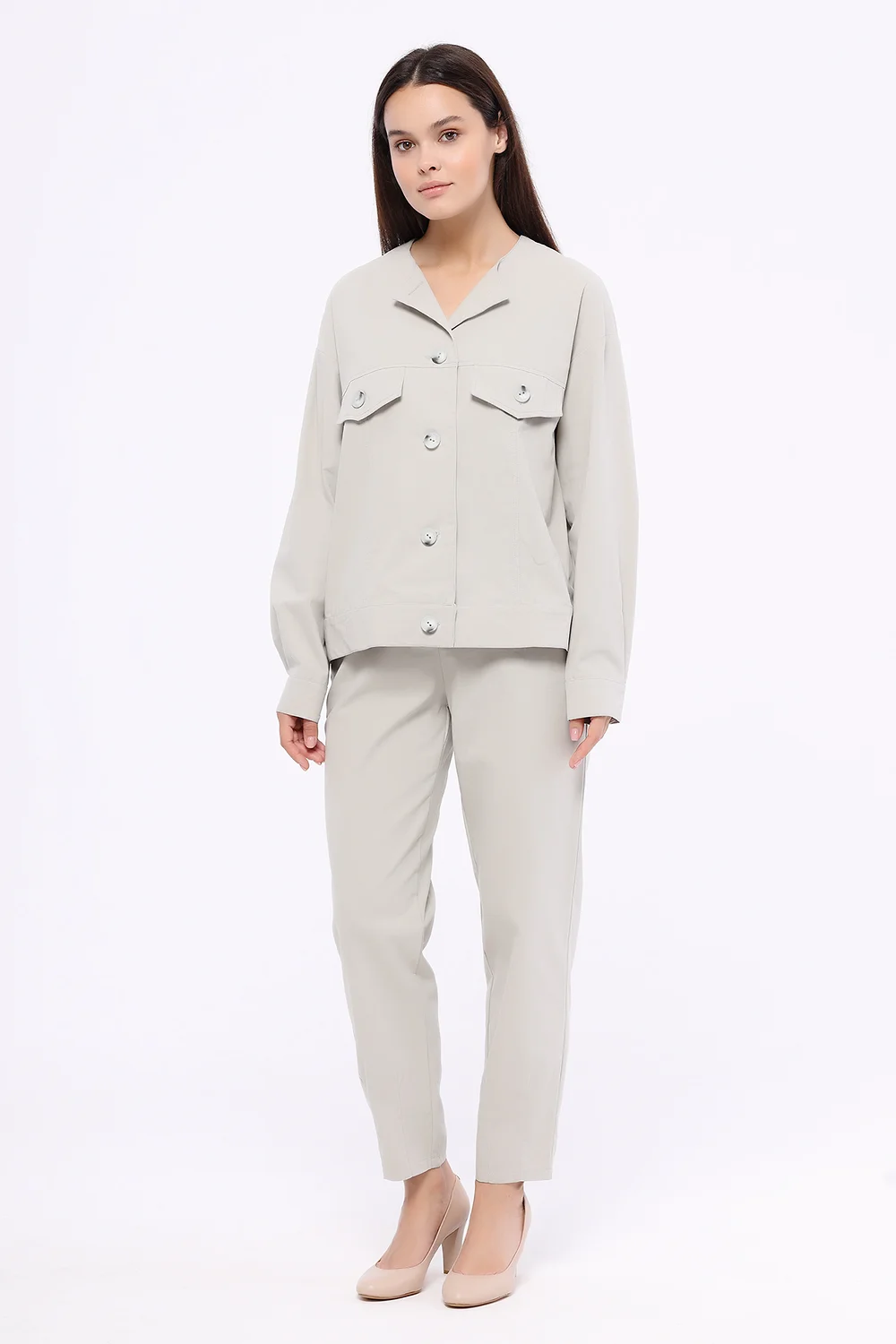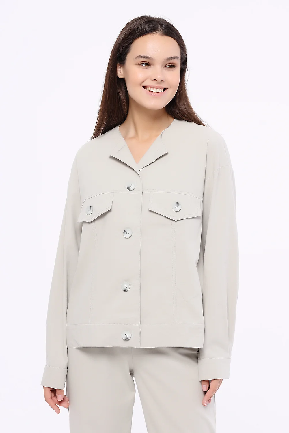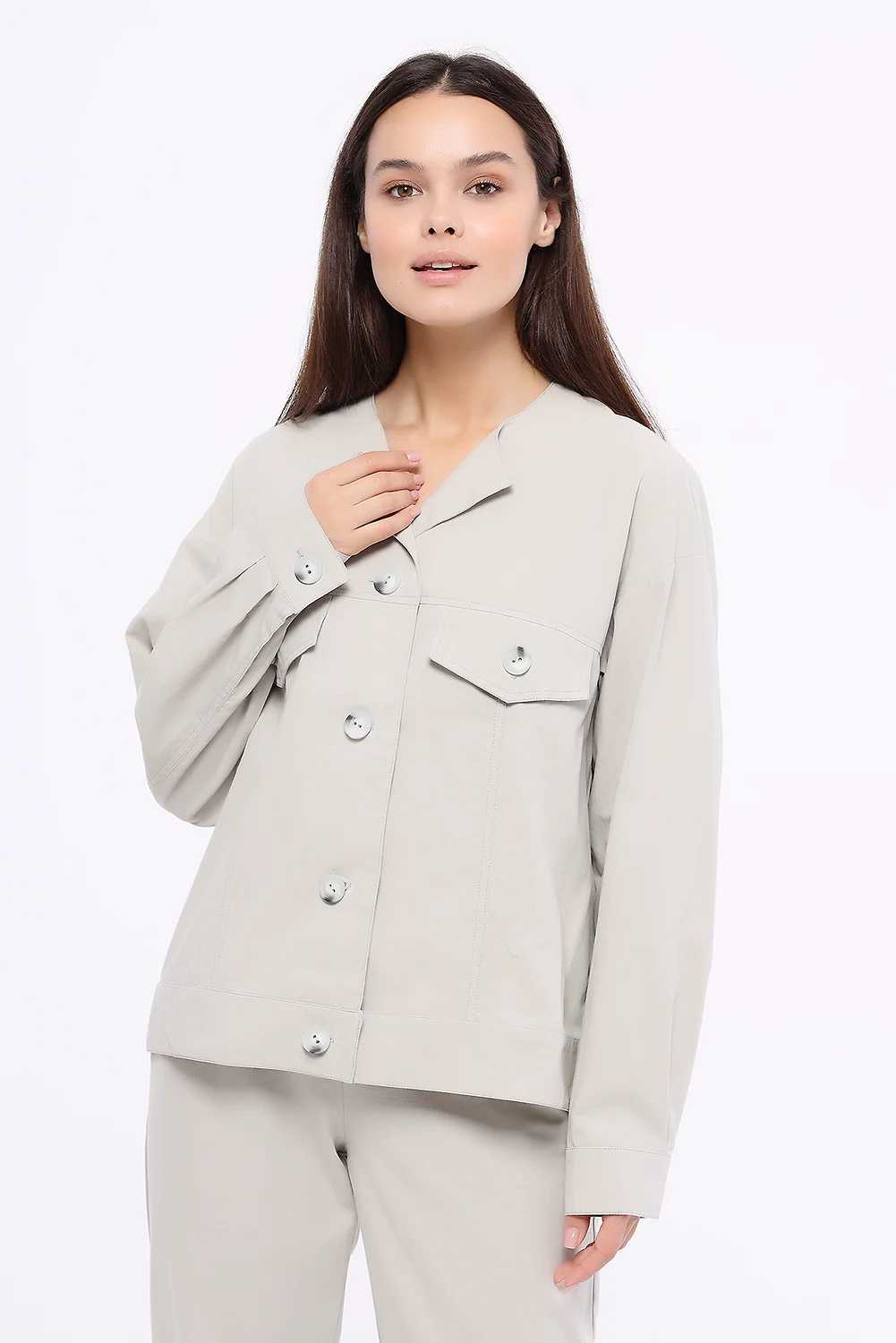 Выбирая, что набросить на плечи летним вечером, Ваш выбор падёт на хлопковый жакет прямого кроя. Свободный фасон с длинным рукавом обеспечит Вам уют и комфорт в прохладную погоду. Спущенные рукава соответствуют современному крою жакета. На полочке расположены декоративные клапана, карманов на жакете нет. Вы можете быть уверены, что прямой жакет прослужит Вам не один сезон, ведь он выполнен из высококачественного хлопка.