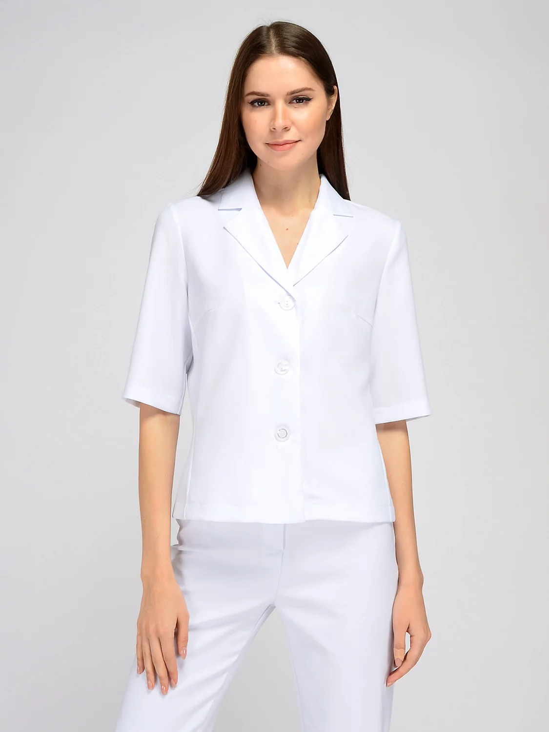 Укороченный жакет на пуговицах уверенно дополнит Ваш весенний офисный гардероб. Классический отложной воротник и V-образный вырез добавляют всему образу строгости. Прямой крой и укороченные рукава до локтя позволят Вам чувствовать себя комфортно и свободно в жаркую погоду. Укороченная длина жакета выгодно подчёркивает линию талии . Отделка горловины - воротник. Рукав укороченный. Вид застёжки - пуговицы. Воротник отложной. V-образный вырез. Длина - укороченная. Крой прямой. Рекомендована стирка при температуре не более 30С.