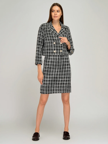 Жакет прямого кроя идеально гармонирует с широкими брюками полной длины из нашей коллекции. Жакет можно использовать как самостоятельный элемент, а можно надеть под него футболку или блузку с коротким рукавом и носить нараспашку. Укороченный жакет предполагает деловой стиль, поэтому старайтесь сочетать его с классической обувью.