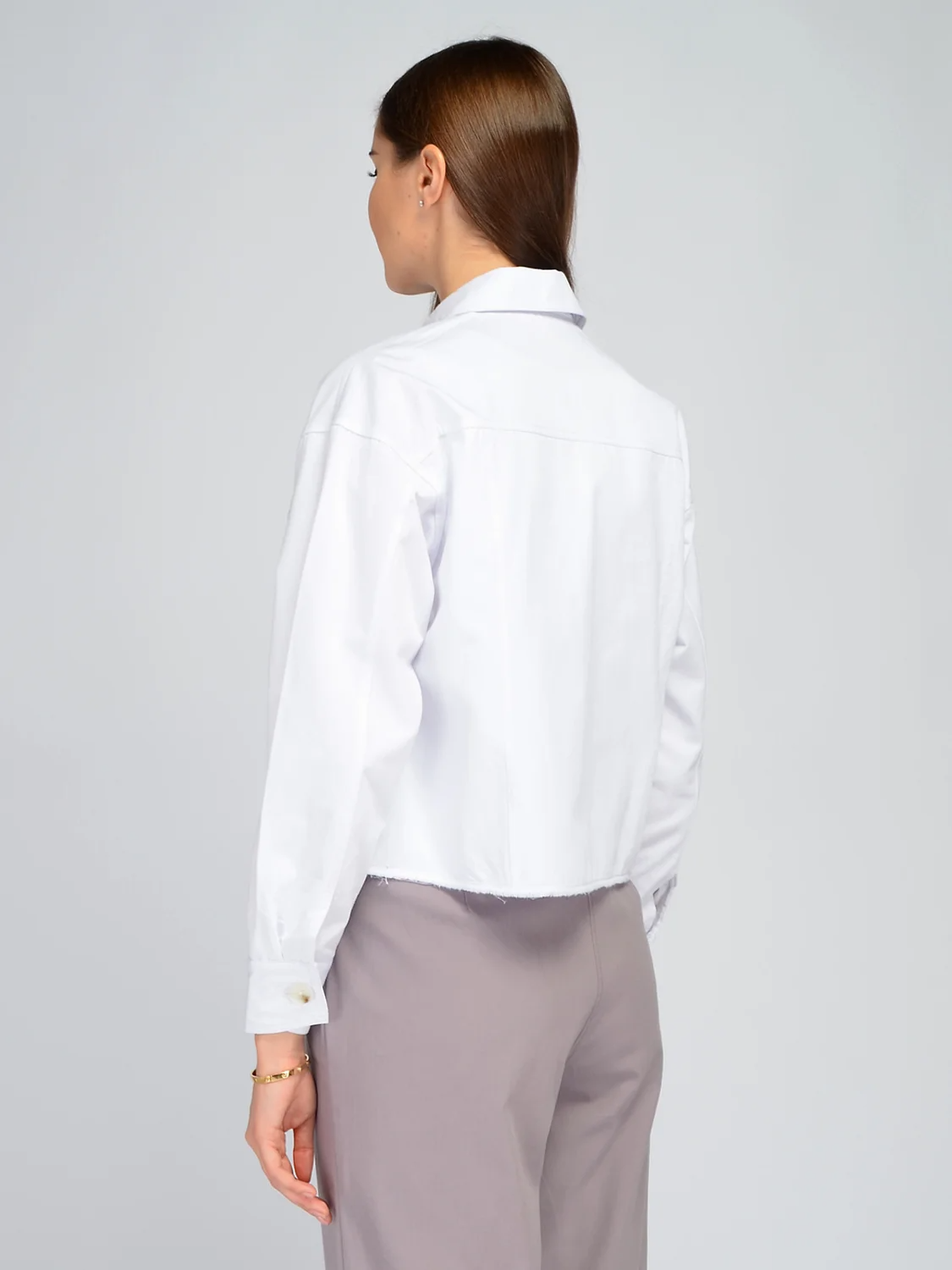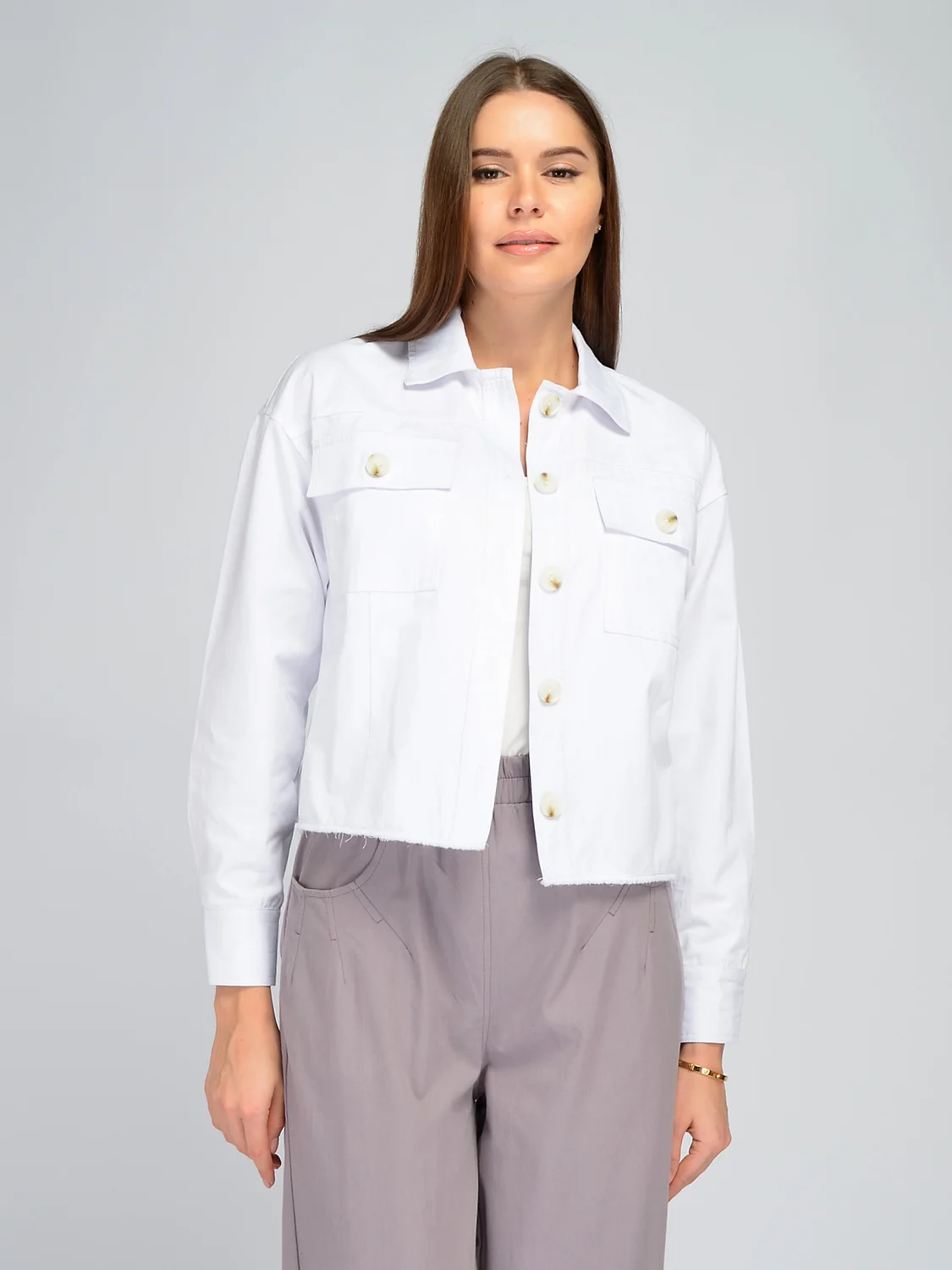 Повседневный хлопковый жакет станет прекрасным дополнением образов в стиле кэжуал весной и летом. Жакет выполнен из 100% хлопка, а это значит, он сохранит опрятный вид даже после многих стирок и будет радовать Вас не один сезон. Пиджак имеет отложной воротник, застегивается на пуговицы. На груди располагаются два накладных кармана, в которых можно держать необходимые мелочи. Стильный жакет имеет крой оверсайз и спущенную линию плеча, дополняя актуальный современный образ. Нижняя часть рубашки имеет необработанный край, добавляя легкой небрежности и делая образ легким и расслабленным. Хлопковый жакет оверсайз впишется в городские образы девушек и женщин разного возраста, роста и комплекции. Универсальный летний жакет можно сочетать с джинсами, юбками, шортами, хлопковыми брюками, футболками и топами. Свободный жакет скроет возможные недостатки фигуры в области живота и бедер. Плотная рубашка подойдет тем, кто ведет активный образ жизни и выбирает практичные и модные образы на каждый день!