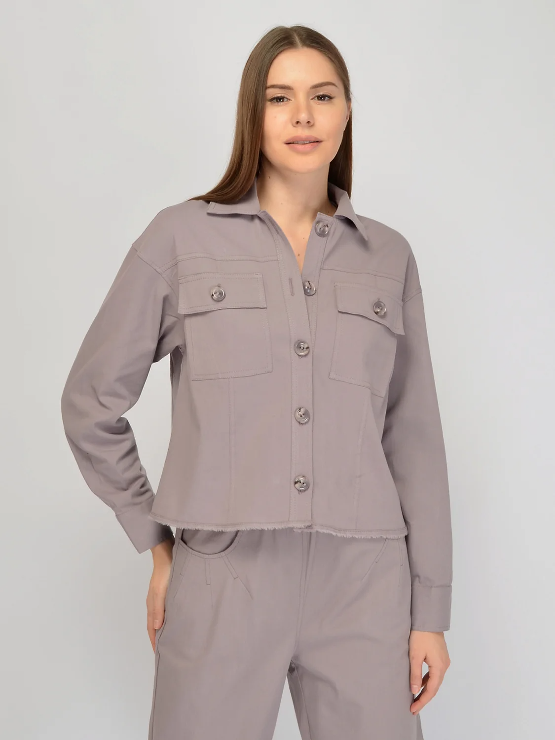 Повседневный хлопковый жакет станет прекрасным дополнением образов в стиле кэжуал весной и летом. Жакет выполнен из 100% хлопка, а это значит, он сохранит опрятный вид даже после многих стирок и будет радовать Вас не один сезон. Пиджак имеет отложной воротник, застегивается на пуговицы. На груди располагаются два накладных кармана, в которых можно держать необходимые мелочи. Стильный жакет имеет крой оверсайз и спущенную линию плеча, дополняя актуальный современный образ. Нижняя часть рубашки имеет необработанный край, добавляя легкой небрежности и делая образ легким и расслабленным. Хлопковый жакет оверсайз впишется в городские образы девушек и женщин разного возраста, роста и комплекции. Универсальный летний жакет можно сочетать с джинсами, юбками, шортами, хлопковыми брюками, футболками и топами. Свободный жакет скроет возможные недостатки фигуры в области живота и бедер. Плотная рубашка подойдет тем, кто ведет активный образ жизни и выбирает практичные и модные образы на каждый день!