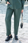 Юбка трапециевидного силуэта с отрезной кокеткой из однотонной ткани. По переду юбки застежка на тесьму молнию в гульфике и пуговицу в поясе. Пояс в юбке притачной со шлёвками, вставкой эластичной тесьмы-резинки в бочках от талиевых вытачек. По переду юбки прорезные карманы. По заднему полотнищу юбки отрезная кокетка из однотонной ткани со средним швом. Юбка на подкладке.