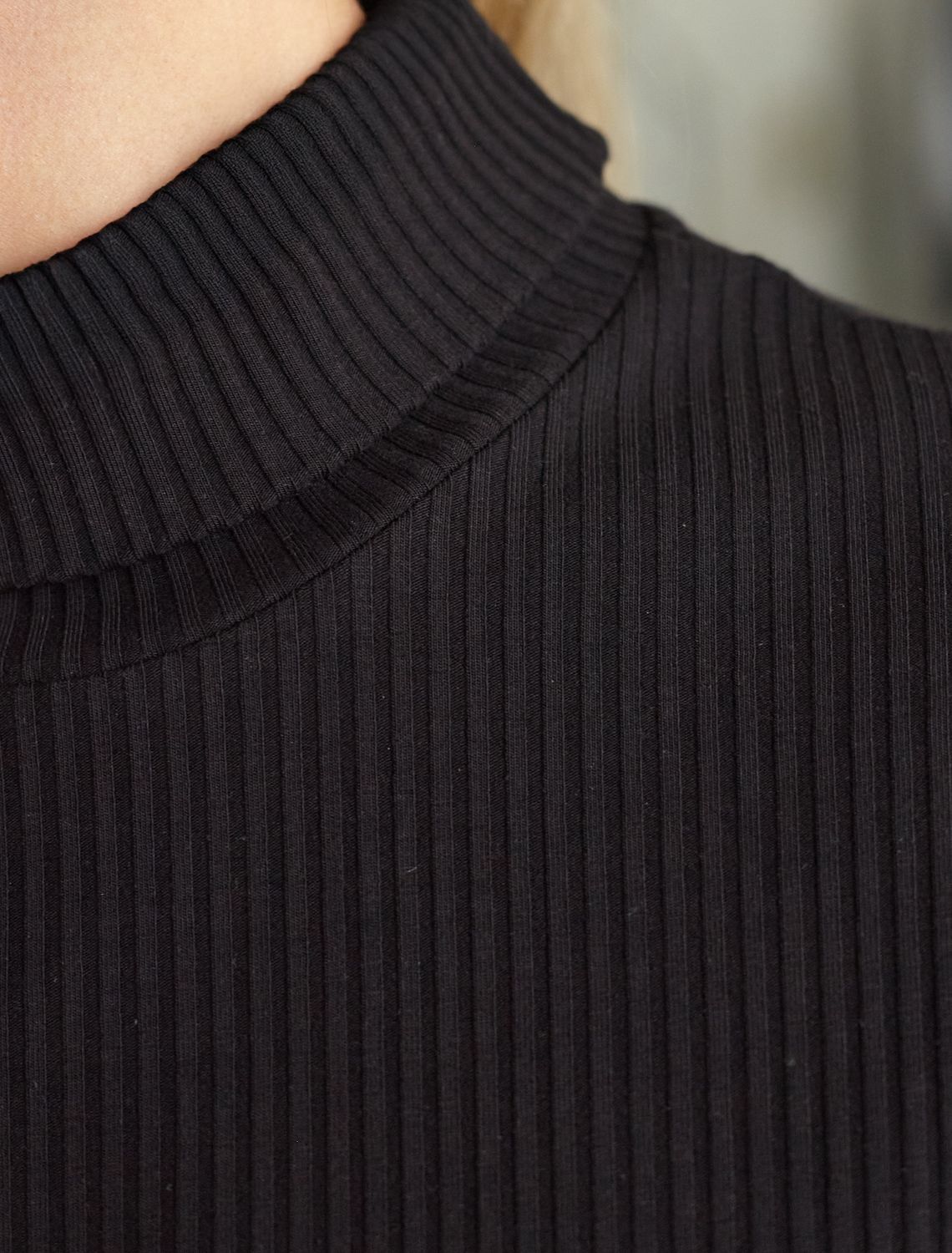 Водолазка с коротким рукавом выполнена из фактурного трикотажа в рубчик. Модель идеально сидит по фигуре не сковывая движения. Хлопковый трикотаж поддерживает оптимальную температуру тела, поэтому в изделии будет комфортно в течении всего дня. Наличие эластана в составе гарантирует формоустойчивости. Водолазка отлично впишется в деловой дресс-код и подойдет для повседневного аутфита.