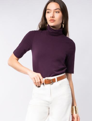 Базовая водолазка цвета бургунди с коротким рукавом выполнена из премиального хлопка с добавлением эластичных волокон. Гладкий трикотаж обеспечит гарантированный комфорт и удобство в использовании. На рукаве изделия металлическая нашивка с логотипом бренда. Совет стилиста: водолазку с коротким удобно сочетать с жакетом или блузкой. Также как самостоятельный верх к широким брюкам. бургунди