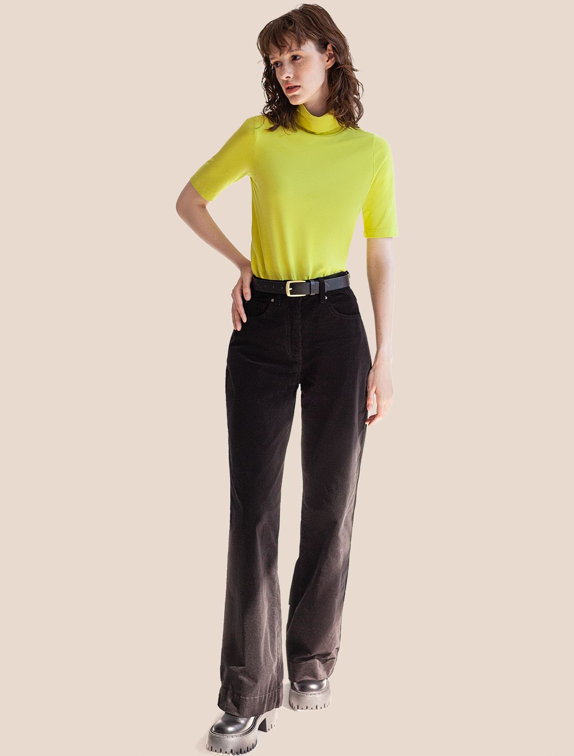 Лаймовая водолазка с коротким рукавом выполнена из премиального хлопка с добавлением эластичных волокон. Гладкий трикотаж обеспечит гарантированный комфорт и удобство в использовании. На рукаве изделия металлическая нашивка с логотипом бренда. Совет стилиста: водолазку с коротким удобно сочетать с жакетом или блузкой. Также как самостоятельный верх к широким брюкам.