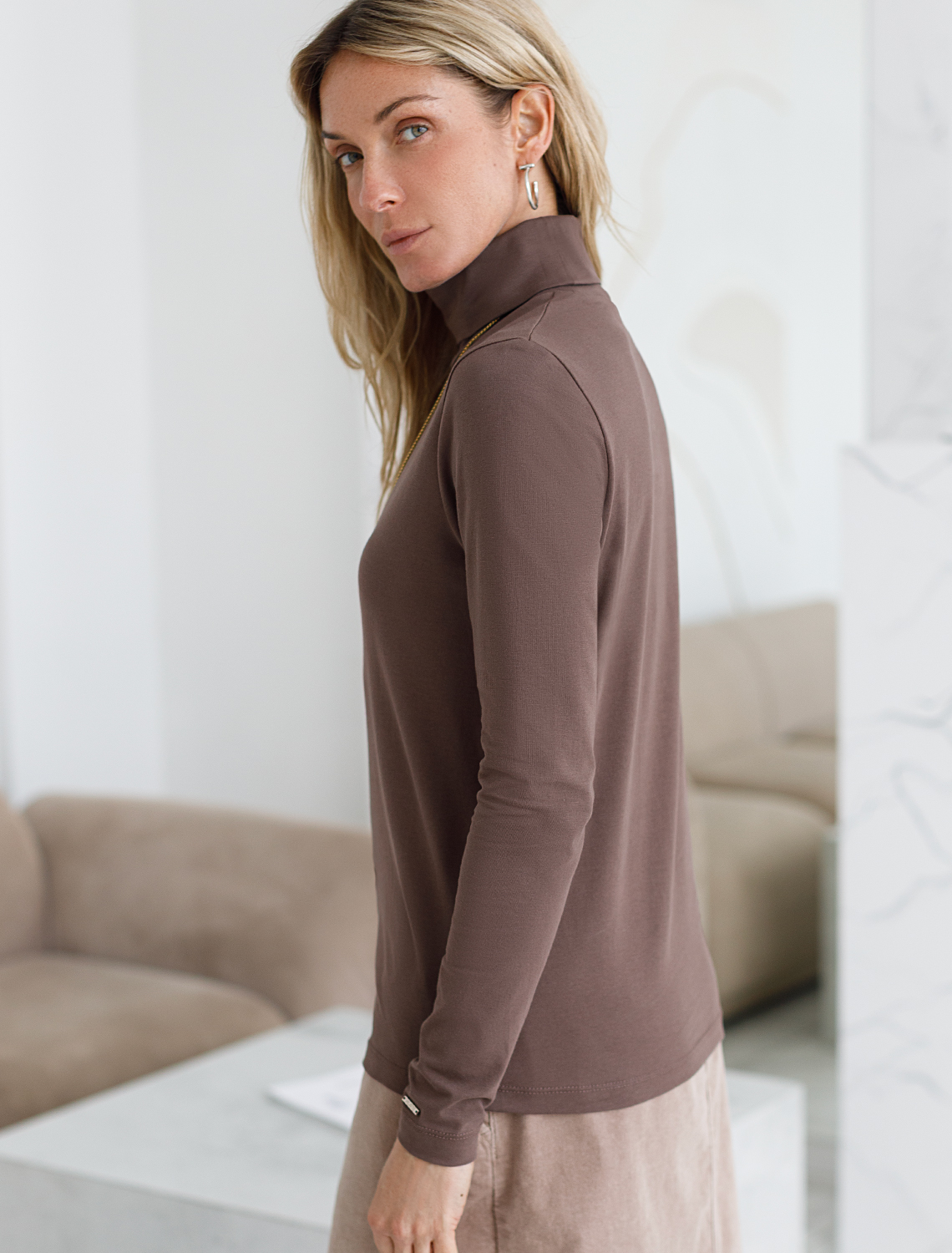 Водолазка из премиального хлопка с эластаном D49.115 темный кофе