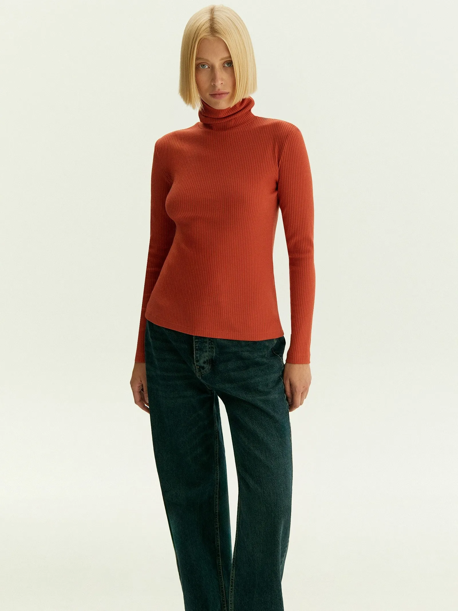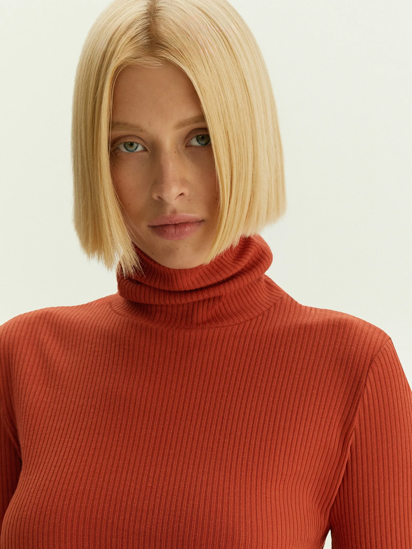 Горчичная базовая водолазка в рубчик станет основой множества повседневных образов.