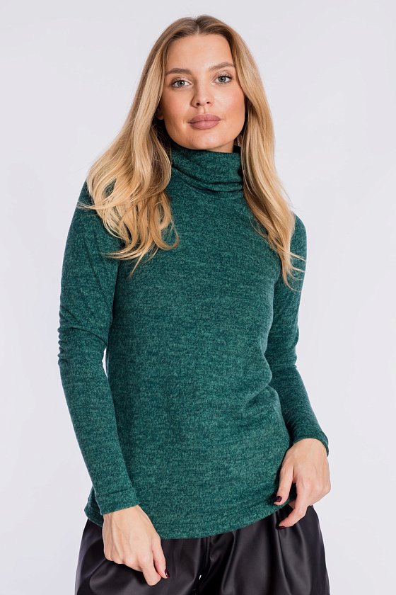 Водолазка женская выполнена из ткани с ангоркой. Водолазка прилегающего силуэта, с длинным рукавом и воротником-стойкой.
