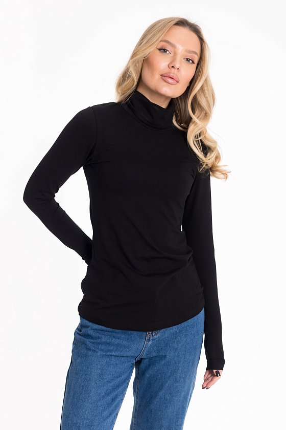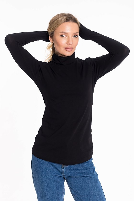 Водолазка женская выполнена из кулирки с лайкрой. Водолазка прилегающего силуэта, с длинным рукавом и воротником-стойкой.
