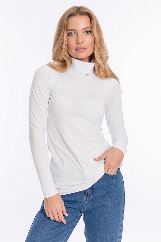 Водолазка женская выполнена из кулирки с лайкрой. Водолазка прилегающего силуэта, с длинным рукавом и воротником-стойкой.