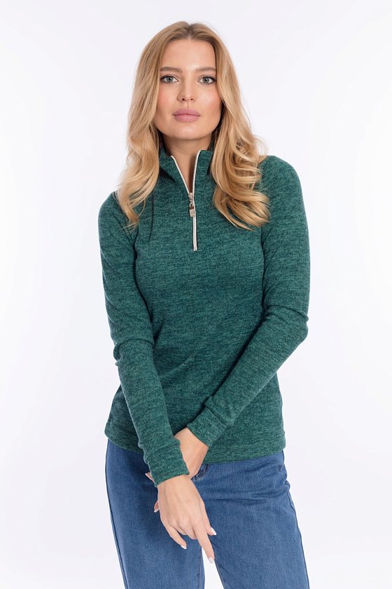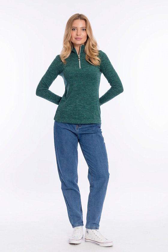 Водолазка из ангорки, с небольшим воротником-стойкой с застёжкой молнию. Рукава втачные длинные, с манжетой.
