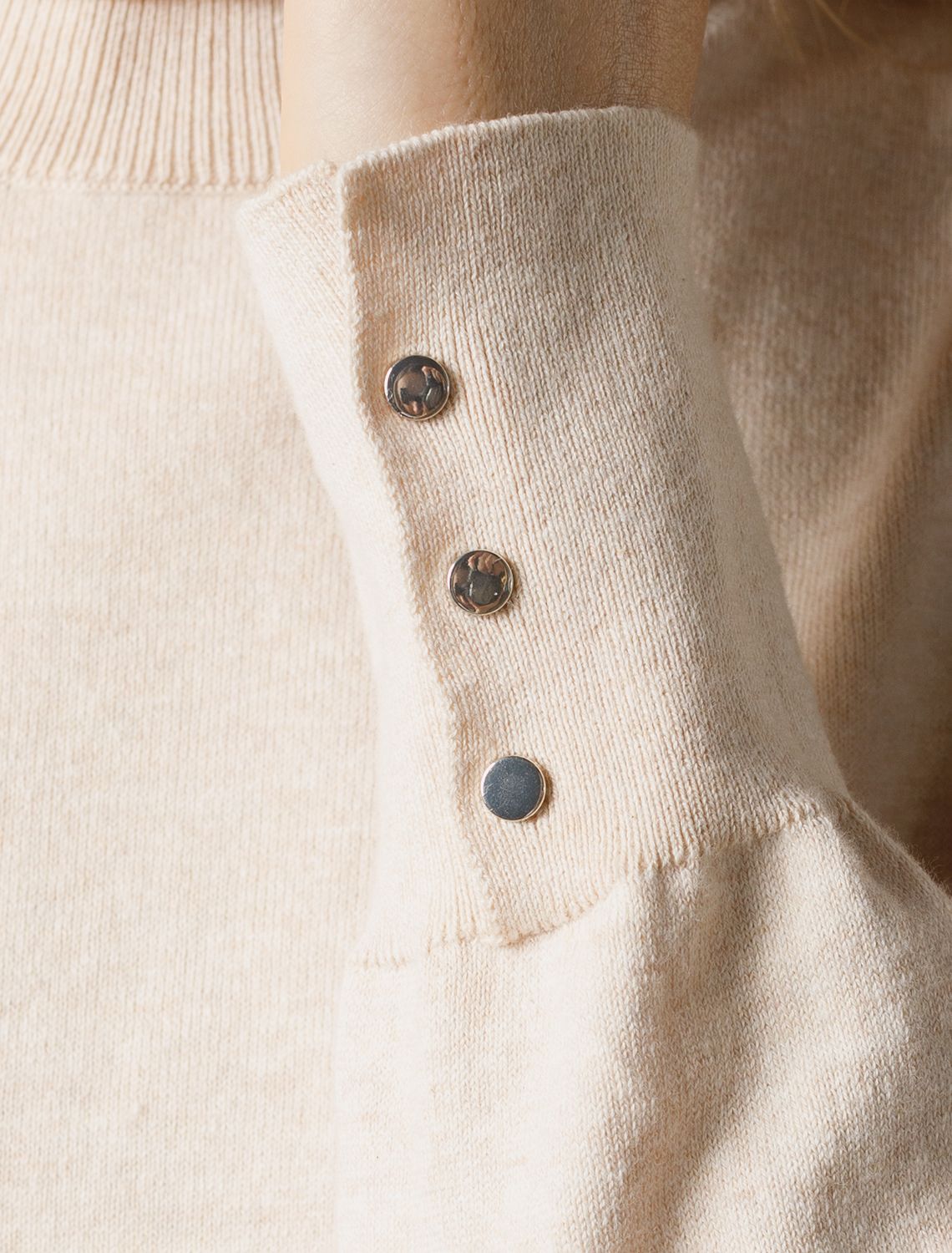 Водолазка тонкой вязки выполнена из хлопка. Лаконичная модель дополнена манжетами с золотистыми пуговицами. Изделие не сковывает движений и подходит для любой фигуры. Мягкая пряжа очень приятная к телу не колется и сохраняет тепло при этом не перегревая.