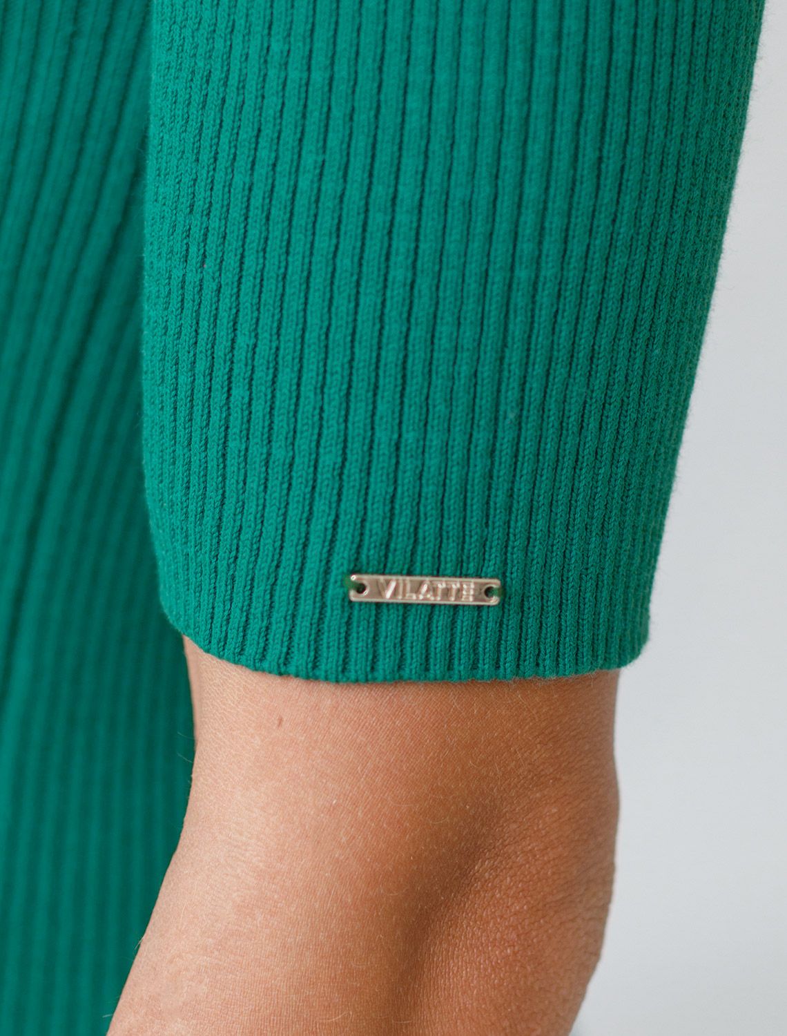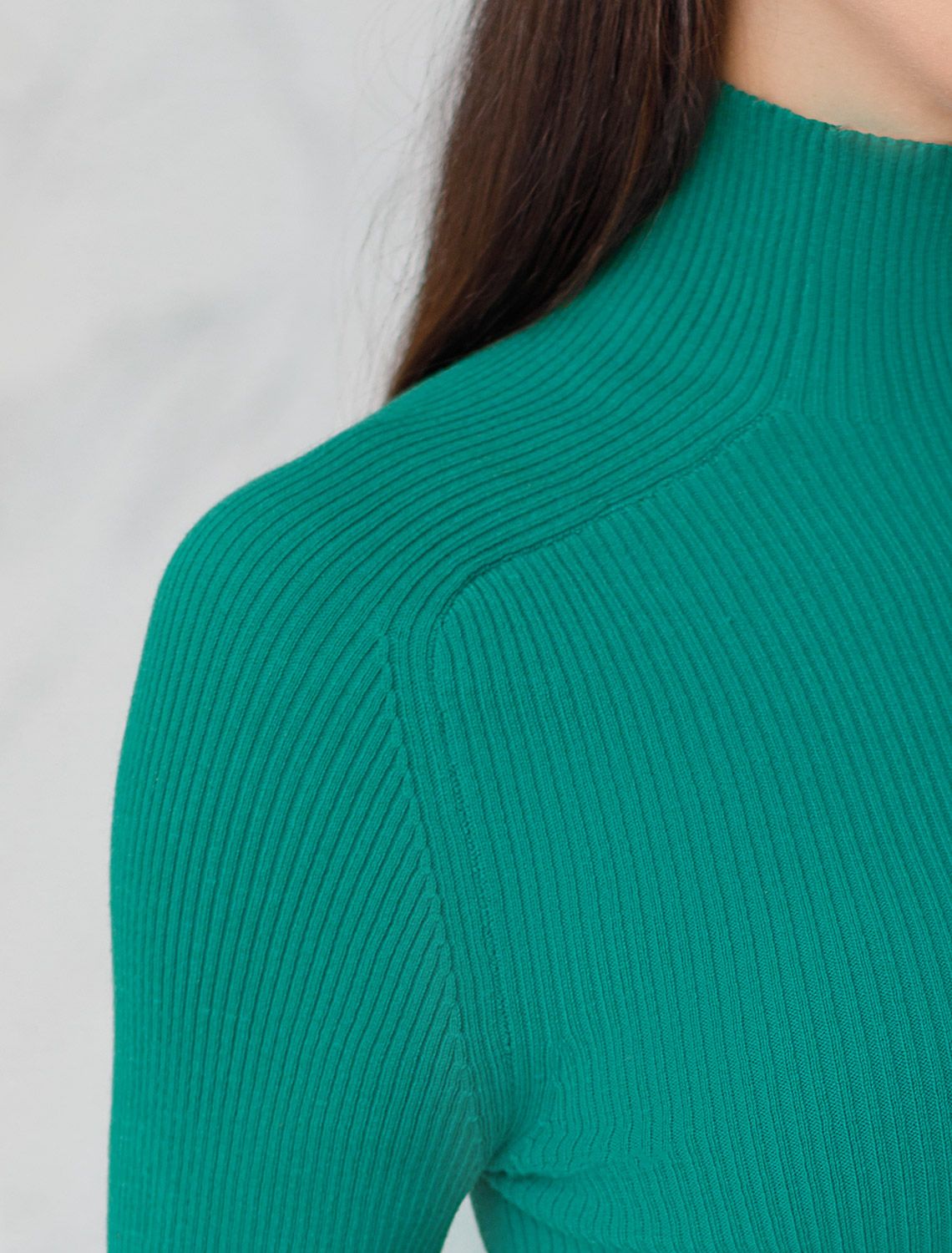 Водолазка тонкой вязки в рубчик из хлопка с нейлоном D34.198 зеленый