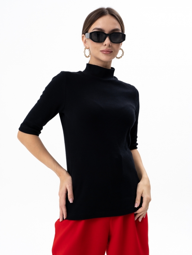 Женская водолазка с рукавами 3/4 и воротником - стойкой, хорошо облегающая фигуру Базовую водолазку из эластичного хлопчатобумажного трикотажа можно комбинировать с юбками из любого материала, будь то шерсть, джинса, кожа, или даже плиссе из атласа. Разница фактур подчеркнет Вашу индивидуальность и вкусовые предпочтения. Дорого и стильно смотрится комплект – водолазка и платье-сарафан из экокожи на тонких бретельках, причем, дополнив лук стильными лоферами, Вы получите отличный офисный аутфит. Водолазку можно носить в комплекте с джинсами, леггинсами, спортивными брюками или длинными трикотажными юбками «в резинку». Хорошо дополнят такой наряд ботильоны на широкой платформе или кроссовки, а летом удобные сандалии или кроссовки. Рост модели на фото 170 см. Параметры модели: 80-61-87. Размер изделия на модели: 42. Размер – Длина изделия по спинке (см): 46 – 67 48 – 67,5 50 – 68 52 – 68,5 54 – 69 56 – 69,5 Материал: кашкорсе с лайкрой с начесом гладкокрашенное (хлопок 60%, п/э 35%, лайкра 5%).