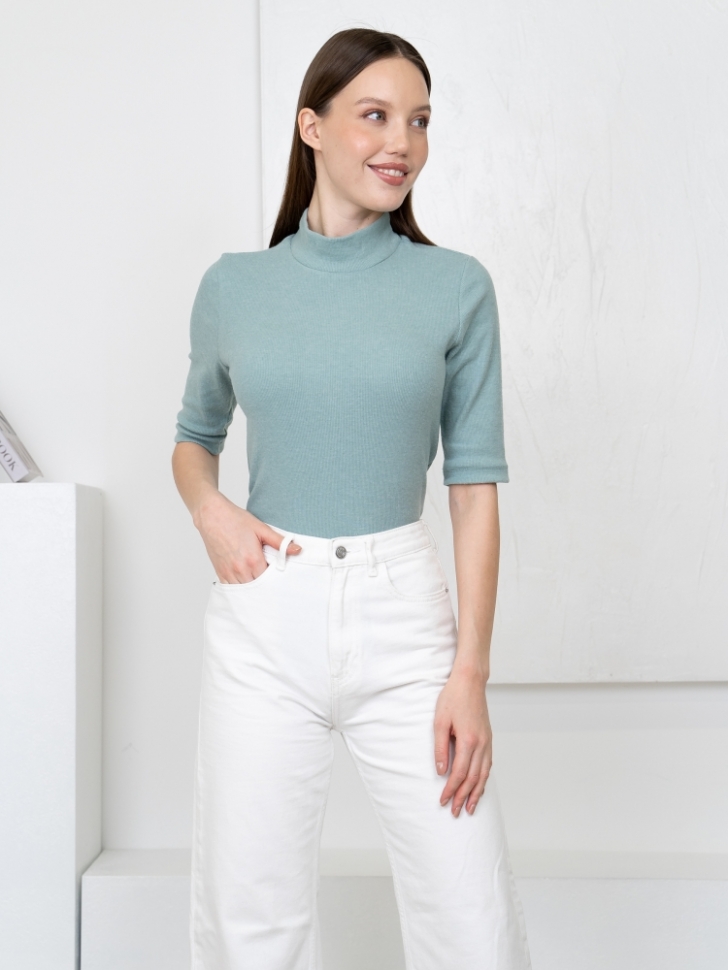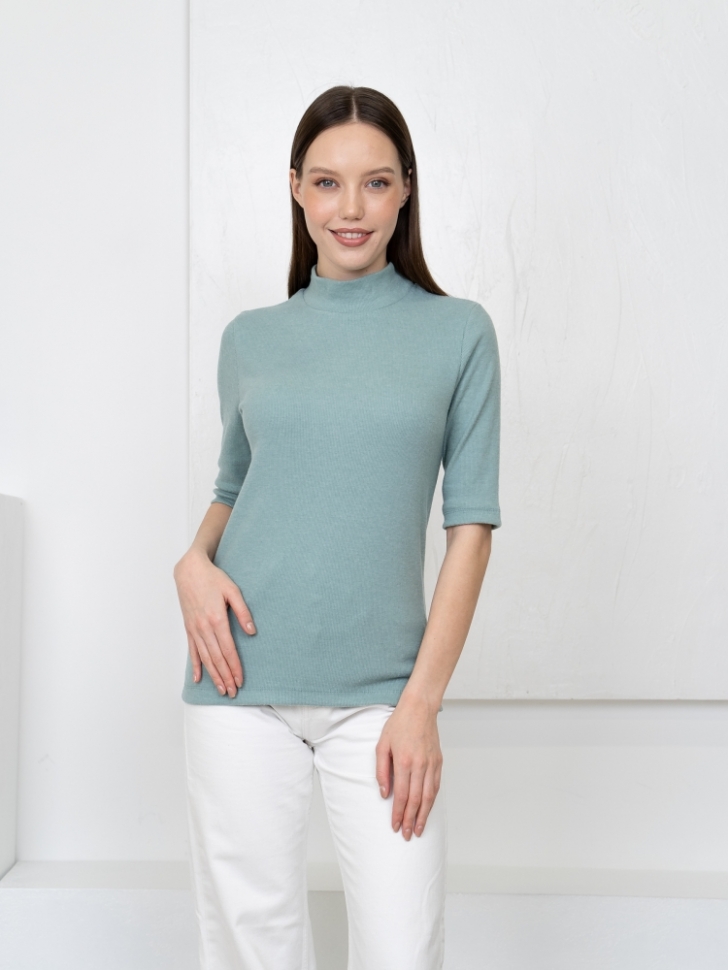 Женская водолазка с рукавами 3/4 и воротником - стойкой, хорошо облегающая фигуру Базовую водолазку из эластичного хлопчатобумажного трикотажа можно комбинировать с юбками из любого материала, будь то шерсть, джинса, кожа, или даже плиссе из атласа. Разница фактур подчеркнет Вашу индивидуальность и вкусовые предпочтения. Дорого и стильно смотрится комплект – водолазка и платье-сарафан из экокожи на тонких бретельках, причем, дополнив лук стильными лоферами, Вы получите отличный офисный аутфит. Водолазку можно носить в комплекте с джинсами, леггинсами, спортивными брюками или длинными трикотажными юбками «в резинку». Хорошо дополнят такой наряд ботильоны на широкой платформе или кроссовки, а летом удобные сандалии или кроссовки. Рост модели на фото 175 см. Параметры модели: 84-60-92. Размер изделия на модели: 46. Размер – Длина изделия по спинке (см): 46 – 67 48 – 67,5 50 – 68 52 – 68,5 54 – 69 56 – 69,5 Материал: кашкорсе с лайкрой с начесом гладкокрашенное (хлопок 60%, п/э 35%, лайкра 5%).