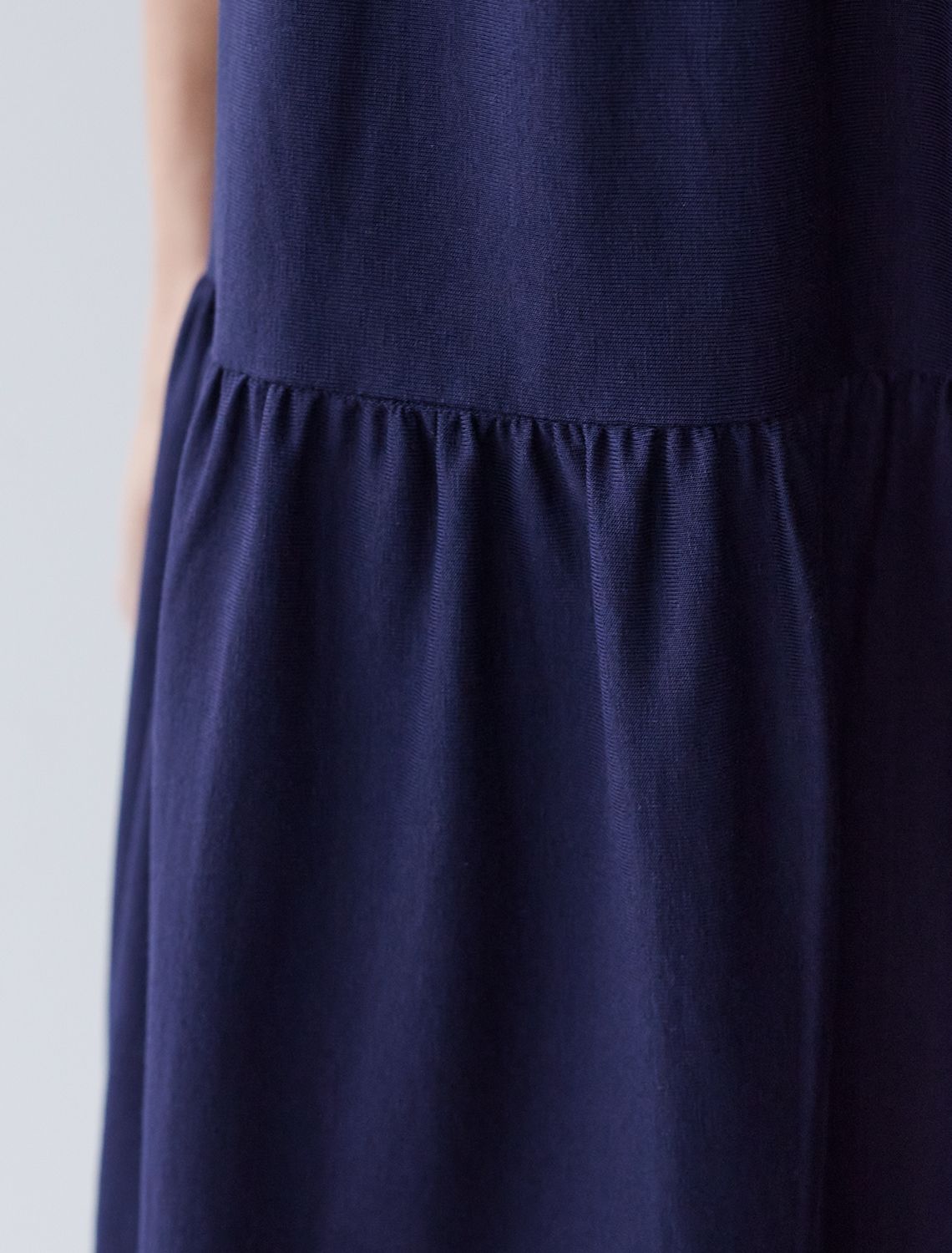 Ярусное платье А силуэта с V вырезом из 100% премиального хлопка D42.123 т.синий