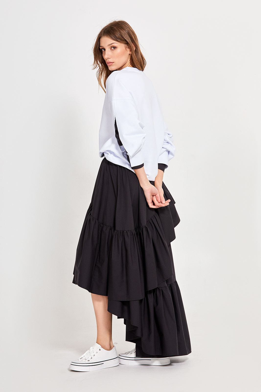 - асимметричная длина и оборки