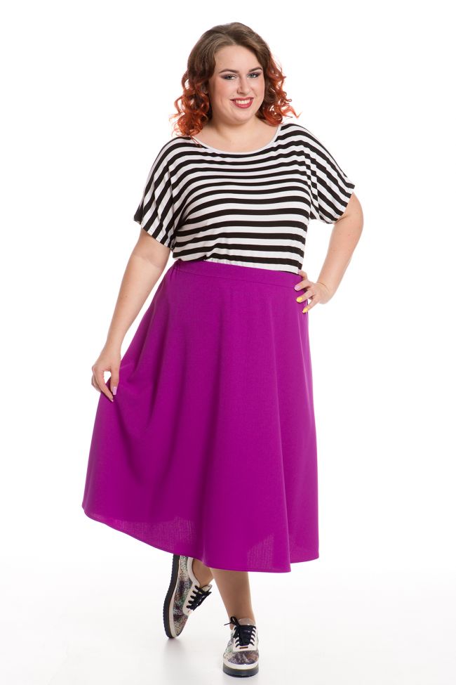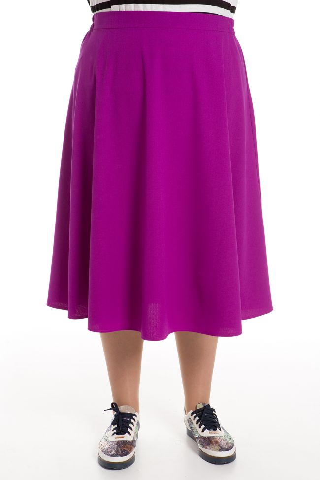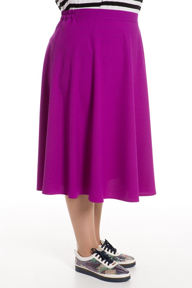 розовый Стильная юбка расклешенного силуэта. Выполнена из яркой плательной ткани. Модель с комфортной посадкой на талии. Верхняя часть дополнена притачным поясом с эластичными вставками по бокам. В боковом шве расположена застежка на пуговицу и молнию. Юбка-миди солнечной расцветки подарит отличное настроение и позитивный настрой в сочетании с блузами или топами. Модель эффектно дополнит Ваш образ.