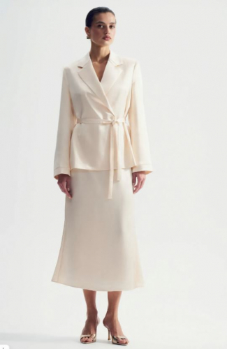 Юбка для роскошных образов под настроение. Атлас нежного сливочного оттенка делает образ особенно элегантным.Модель А-силуэта в длине миди имеет высокую посадку. Застёгивается на молнию сзади. Дополнить юбку можно топом из комплекта или шелковым топом с кружевом на тонких бретелях. Изделие выполнено на приятной к телу вискозной подкладке
