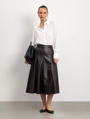 Юбка а-силуэта из экокожи, S1080/chestnut