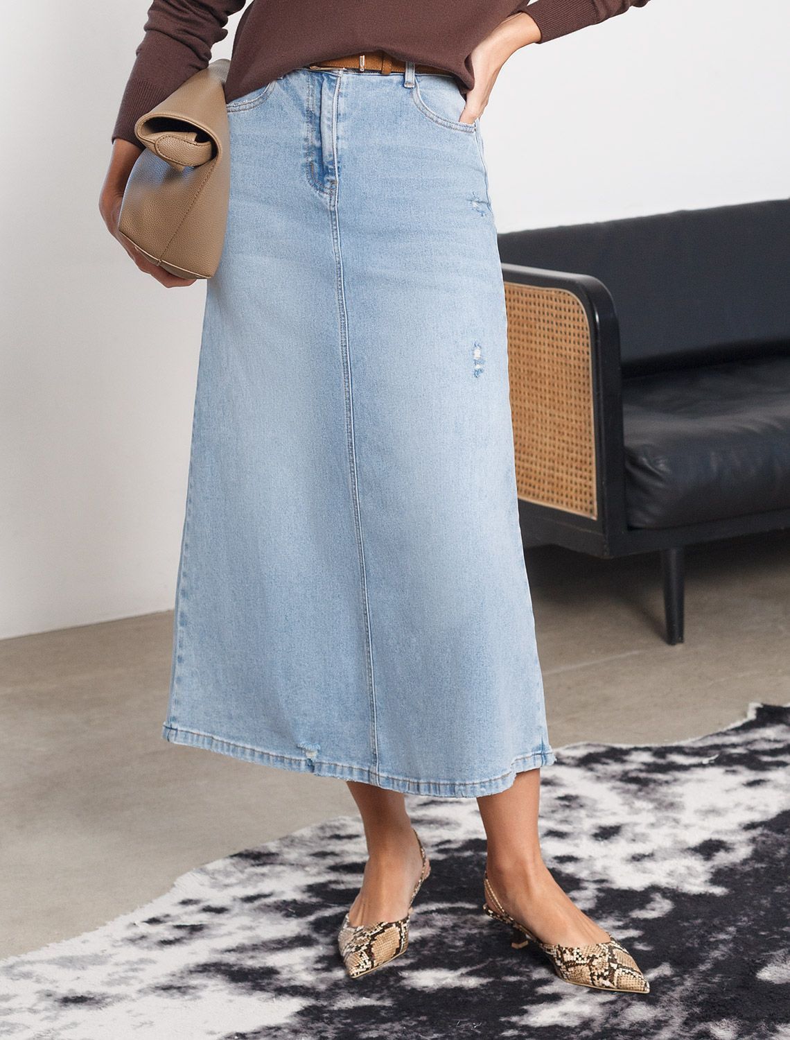 Юбка А-силуэта из эластичного денима D56.118 голубой