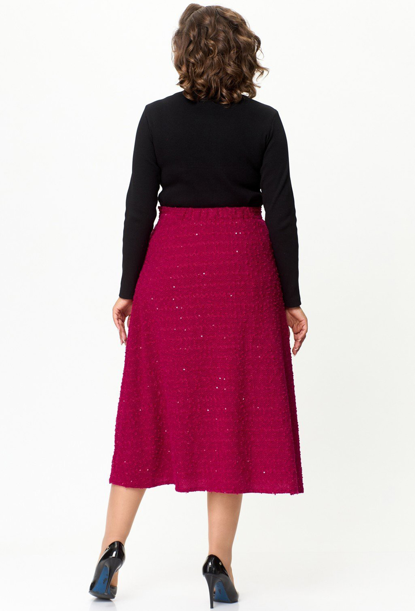 Юбка формы “колокол”, длиной за колено, выполнена из однотонного трикотажного полотна “букле“, юбка на подкладке.