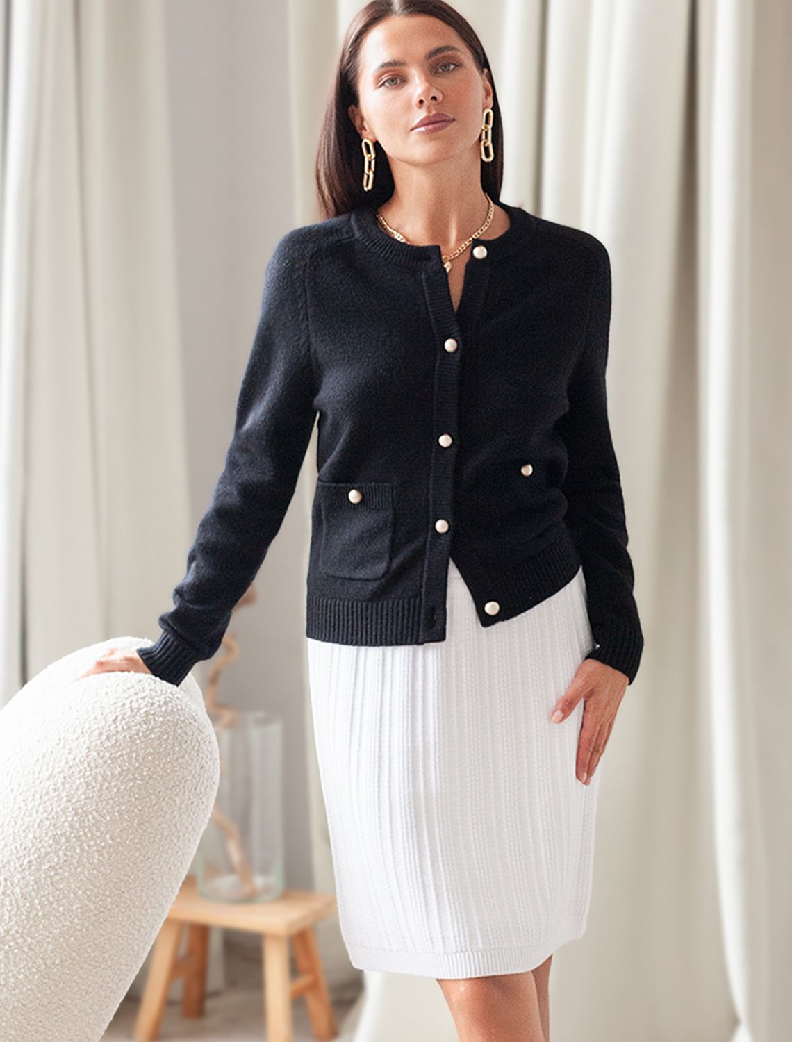Юбка фактурной вязки выполнена из мягкой хлопковой пряжи с добавлением акрила. Изделие дополнено трикотажной подкладкой, в поясе вставлена эластичная резинка, что гарантирует абсолютный комфорт при носке. Сочетайте в костюме с жакетом D31.387 чтобы получить завершённый элегантный образ. натуральный белый