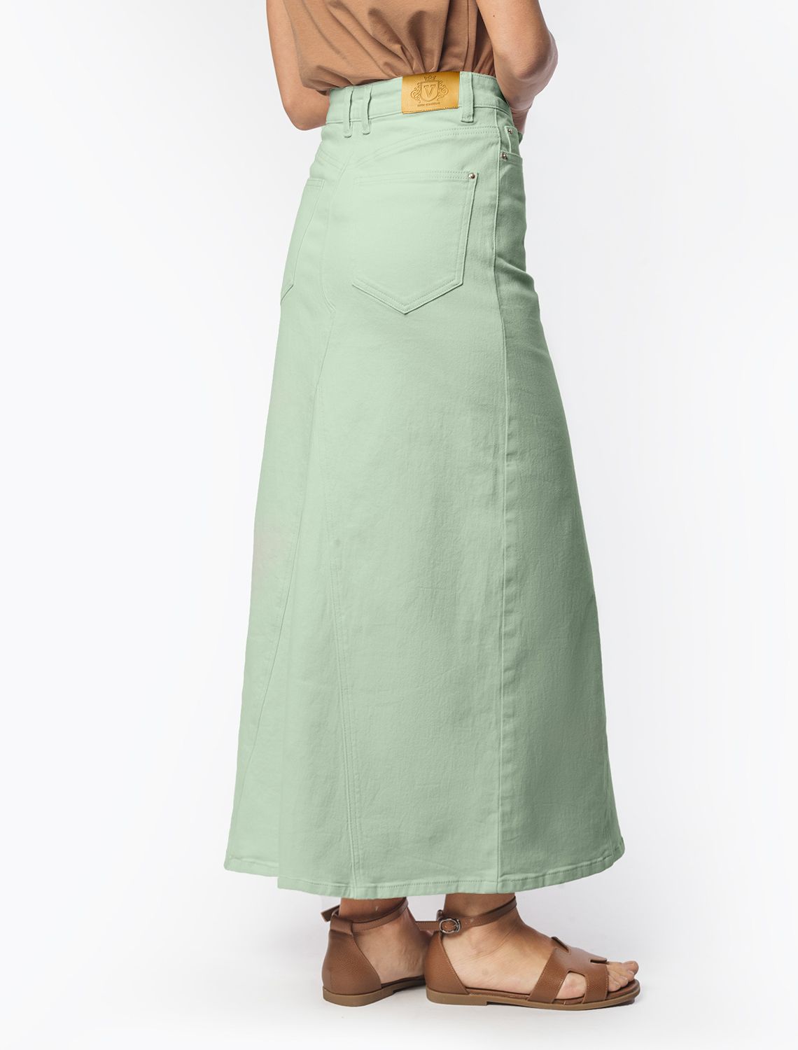 Юбка из денима с эластаном D56.114 светло-оливковый