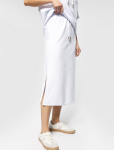 Юбка прямого кроя выполнена из джерси - плотность 400г/м2. Застежка на молнию и потайную пуговицу. Изделие дополнено высоким разрезом сзади и декоративным швом спереди. Изделие хорошо держит форму, отлично тянется и почти не мнется во время использования. Идеальный вариант в офис или в повседневный классический стиль.