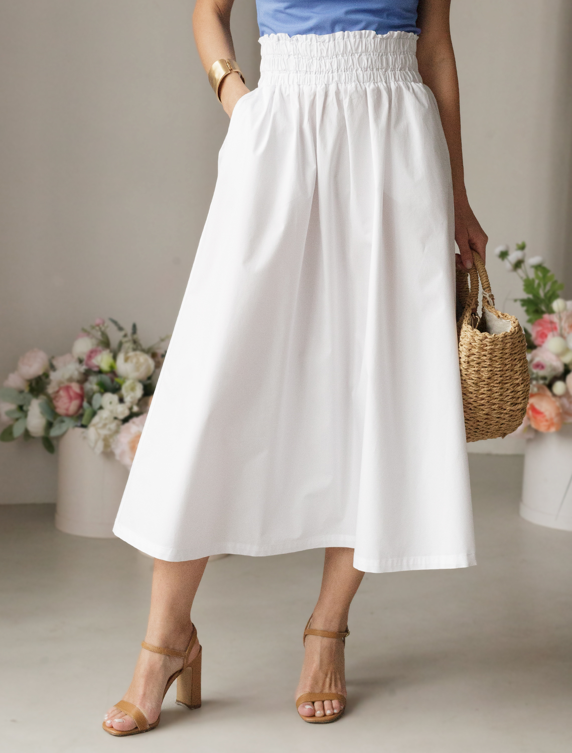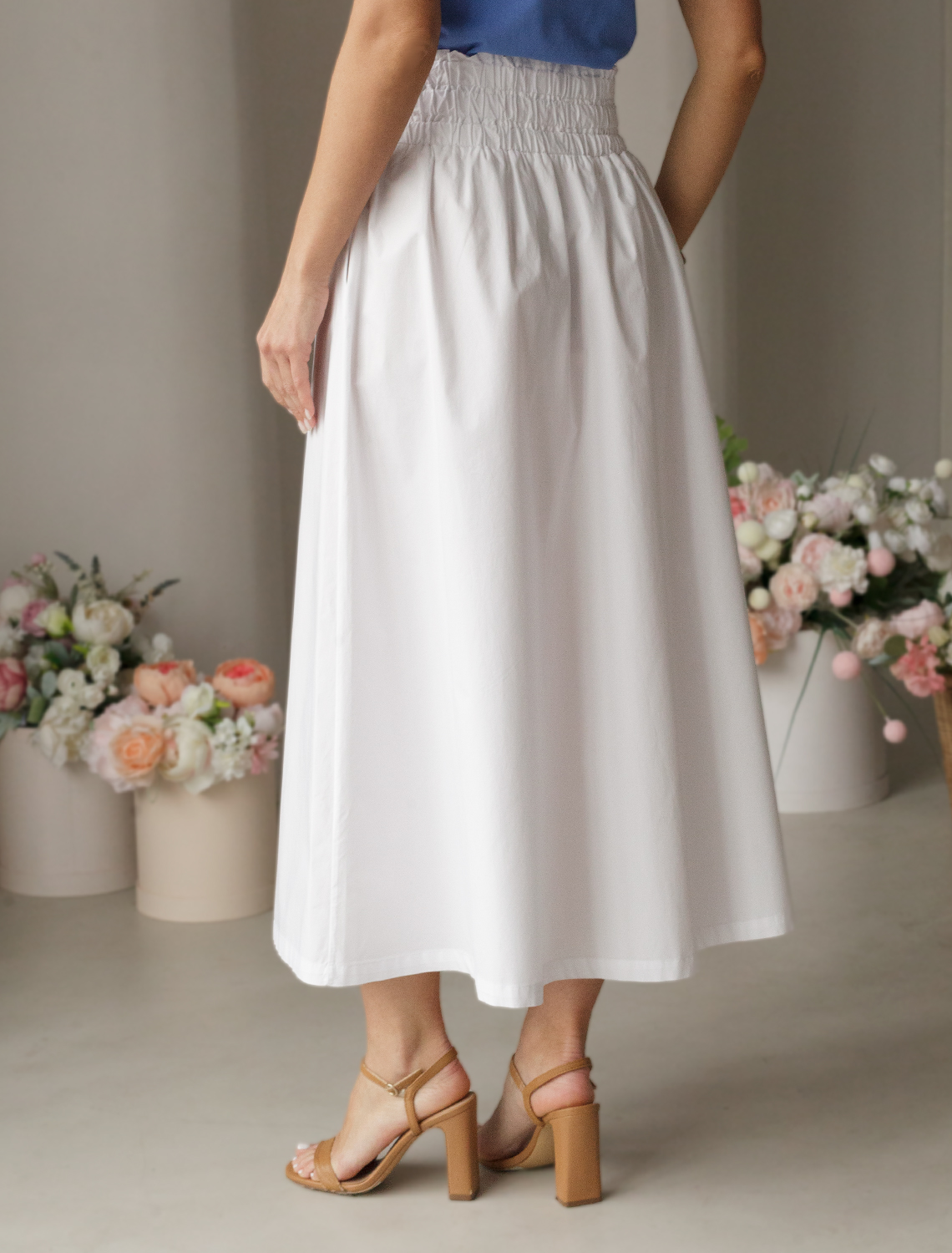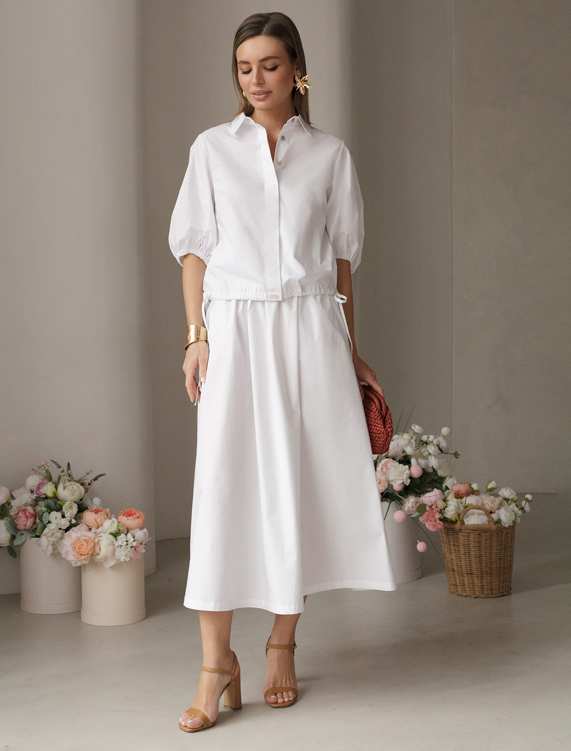 Юбка выполнена из легкого хлопкового поплина. Воздушная модель дополнена боковыми карманами и эластичным поясом на резинке со сборкой. В изделии будет комфортно, даже в самое жаркое время года. Подходит для любой фигуры. Сочетается в костюме с блузкой D29.247 и D29.264.