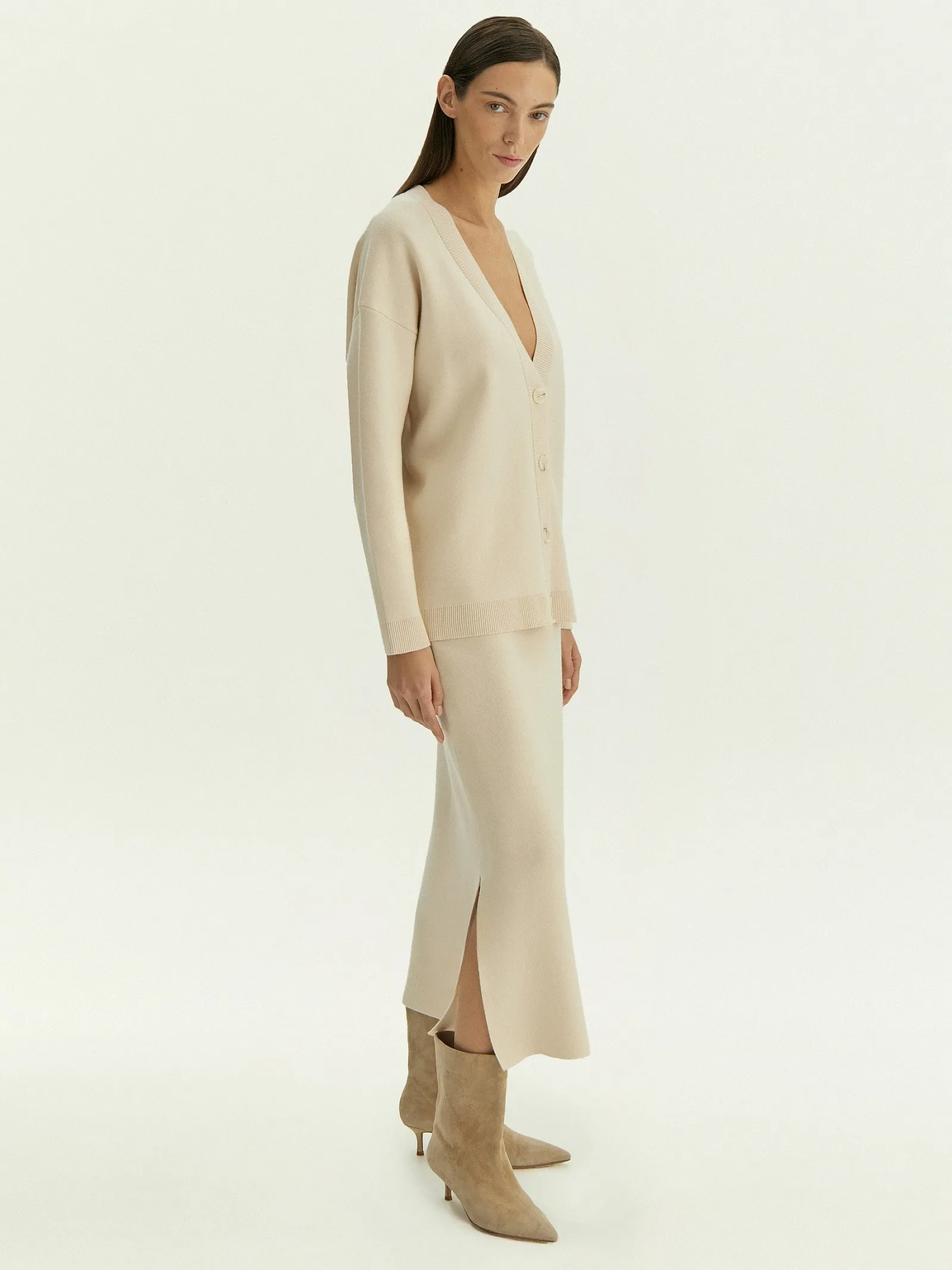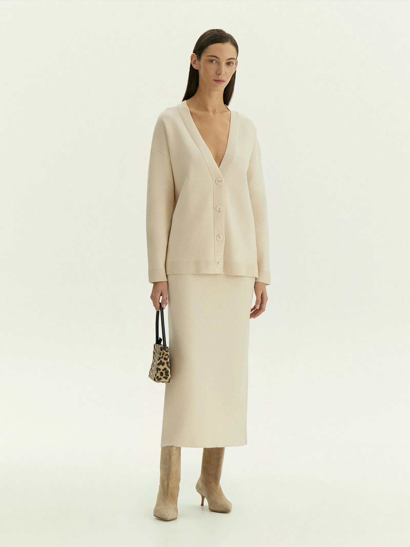 Завершить образ с юбкой можно стильным и уютным кардиганом из комплекта.