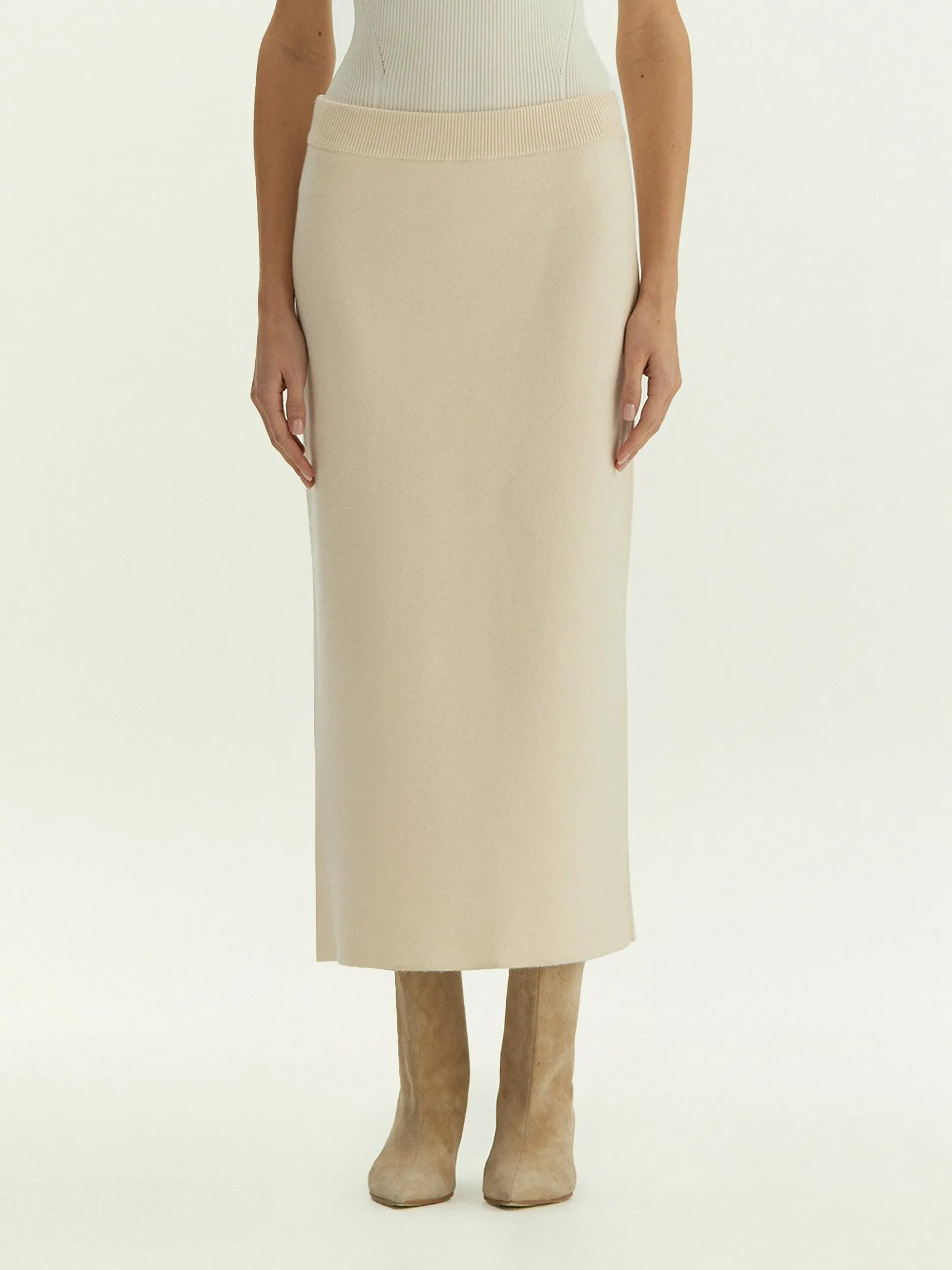 Базовая юбка в молочном цвете создана для уютных повседневных образов. Её можно надеть и дома, и на работу, и посидеть в кафе.