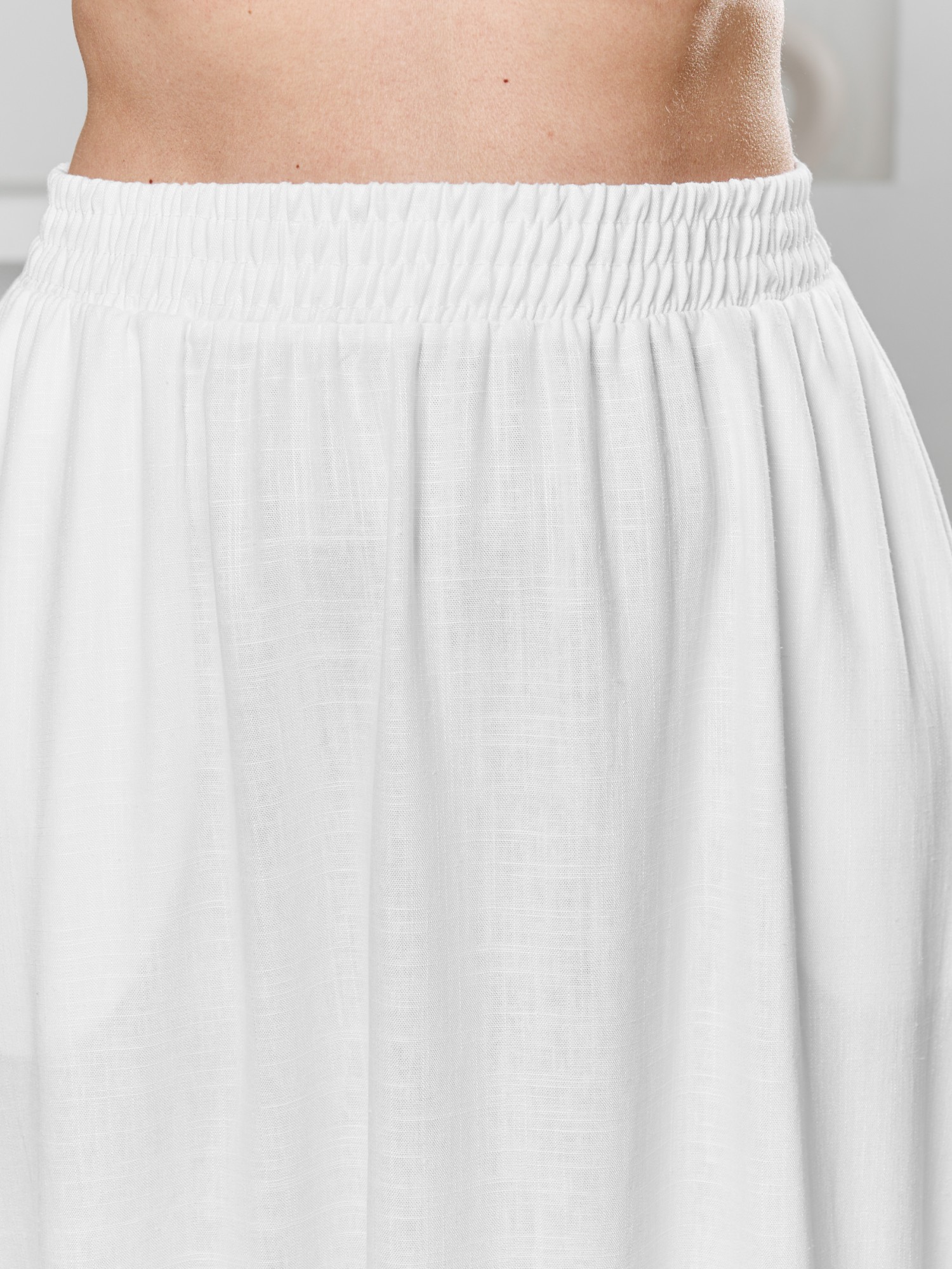 Юбка женская из гладкокрашеного тканого полотна, удлиненная, свободная, с карманами в боковых швах, на притачном поясе с эластичной тесьмой внутри.
