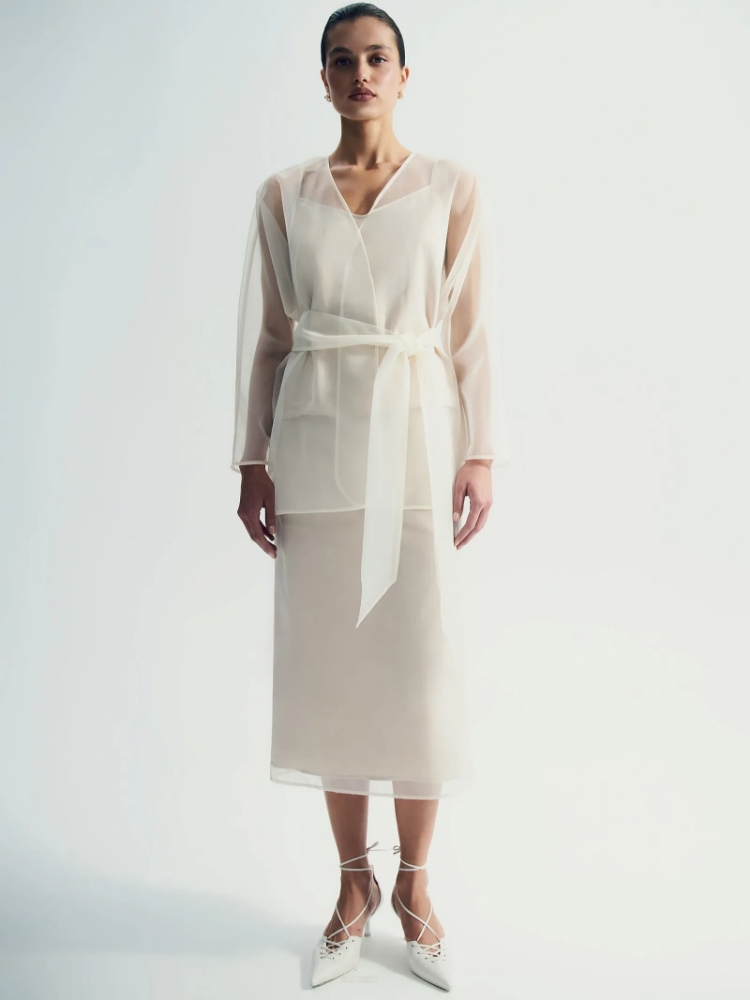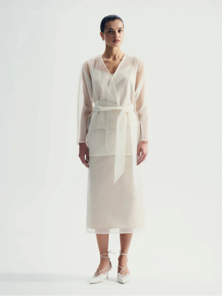 Юбка-карандаш из органзы завершит нарядный образ с кимоно из комплекта, самыми разными топами и мягкими джемперами. Под прозрачной органзой предусмотрена непросвечивающая подкладка. Сочетание белой органзы и подкладки в очень нежном молочном оттенке смотрится элегантно.Модель имеет высокую посадку и универсальную длину миди. Застёгивается на молнию сзади. Трендовая юбка удобна в стилизациях и вносит приятное разнообразие в гардероб. Станет отличным выбором для свадьбы, эстетичных выходных, новогодних и летних образов